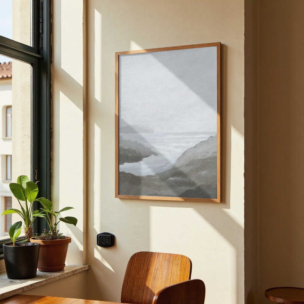 Dan Hobday is a British illustrator based in Devon, where the surrounding landscapes inspire his contemporary, minimalist style. Working with oil, acrylics, digital, and mixed media, he blends abstraction and simplicity to create calm, atmospheric works. His art is widely appreciated by interior designers and creatives for its refined aesthetic and timeless appeal.
