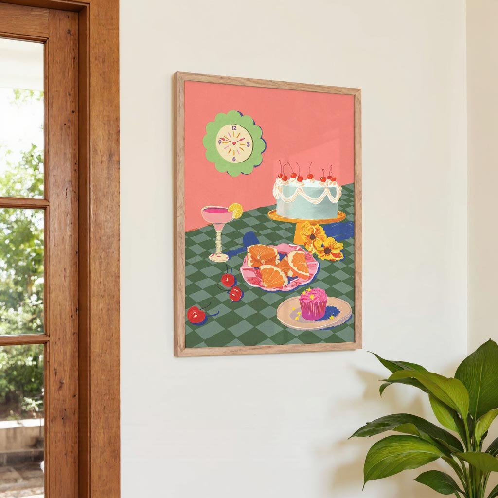 Art. Her distinctive style blends bold, vibrant colours with expressive pencil strokes. Her work explores