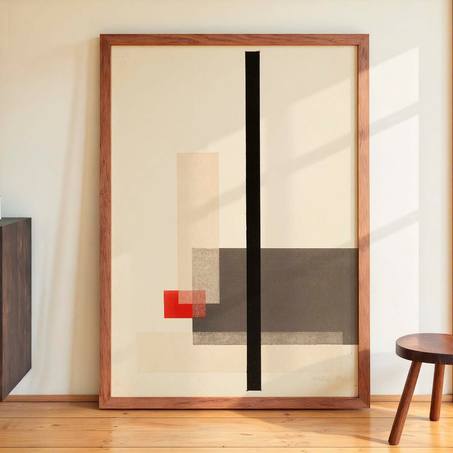 László Moholy-Nagy (Hungarian, 1895–1946) was a pioneering Bauhaus artist known for uniting art, technology, and industry. Influenced by Constructivism, he worked across photography, film, sculpture, and design, famously creating photograms and experimental light-based works.