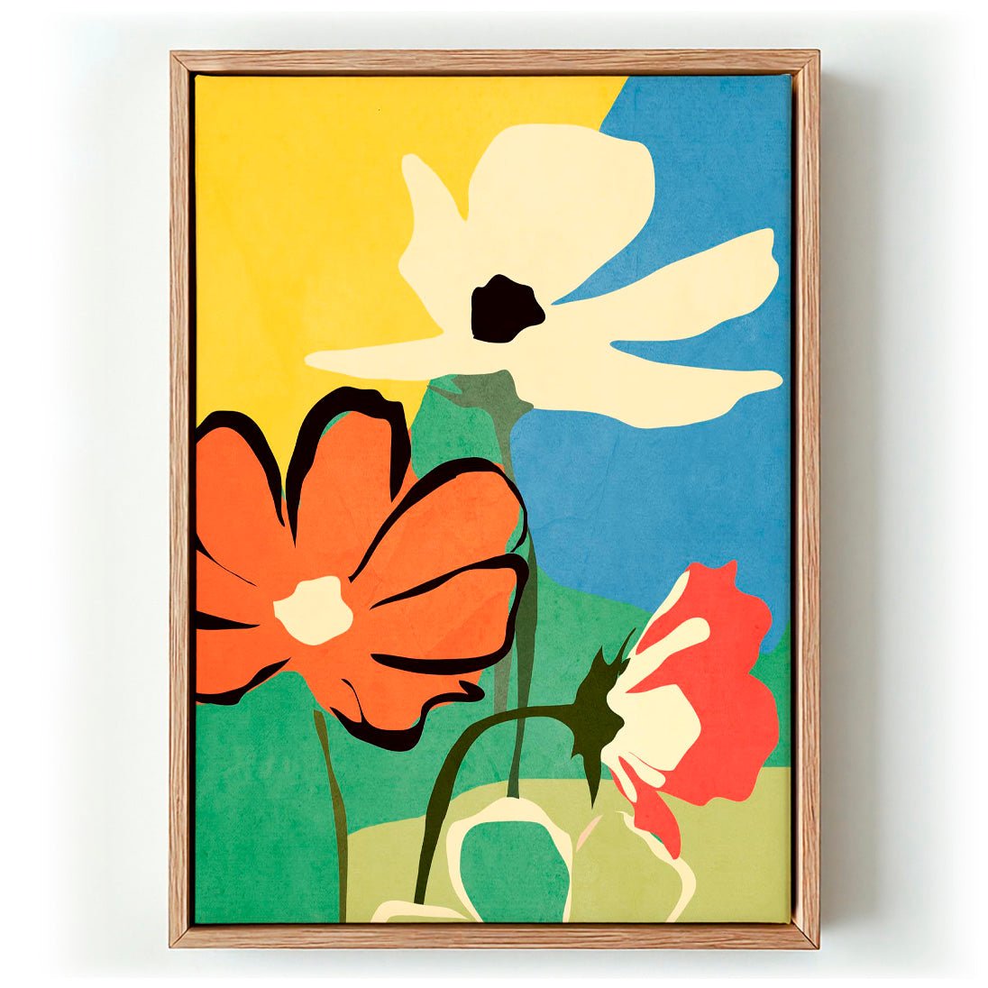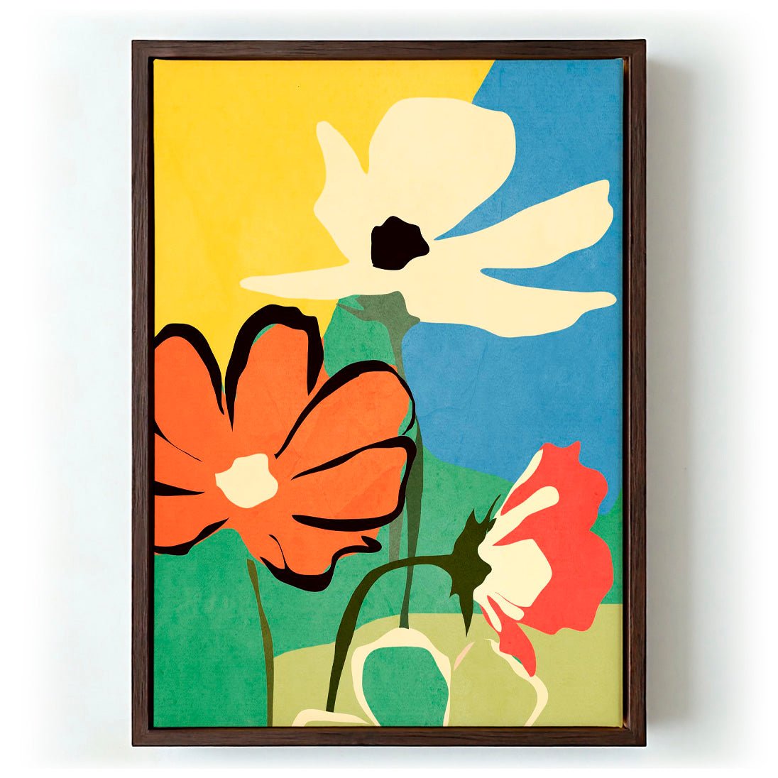 Modern Abstract Art Flowers ist eine grafische Arbeit im Hochformat von ThingDesign, die botanische Motive durch die Linse eines klaren Minimalismus betrachtet. Vereinfachte Blüten- und Landschaftsformen sind in einer Komposition angeordnet, die Symmetrie mit organischer Unregelmäßigkeit verbindet — Formen wiederholen und spiegeln sich, ohne starr zu wirken, und halten die Fläche lebendig. Die erdige Palette und der selbstbewusste Umgang mit Negativraum verleihen dem Werk eine ruhige Ausstrahlung, während der fließende Strich verhindert, dass es zu geometrisch wird. Es bewegt sich mühelos zwischen zeitgenössischem Grafikdesign und naturbasierter Kunst.