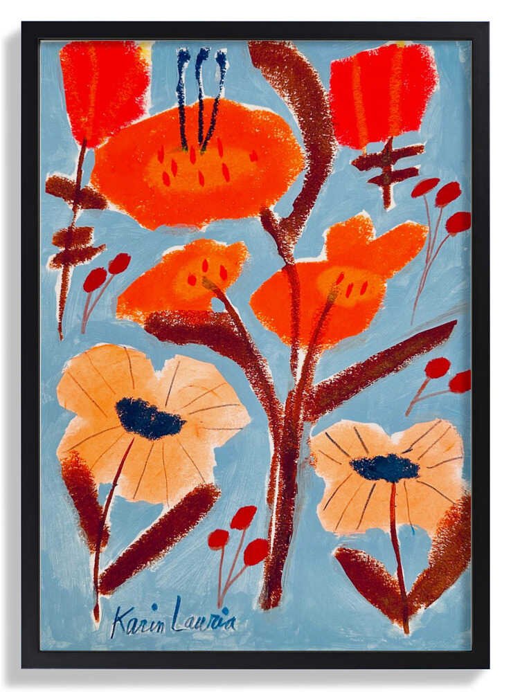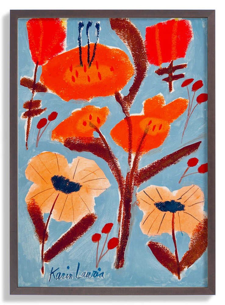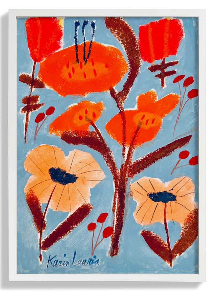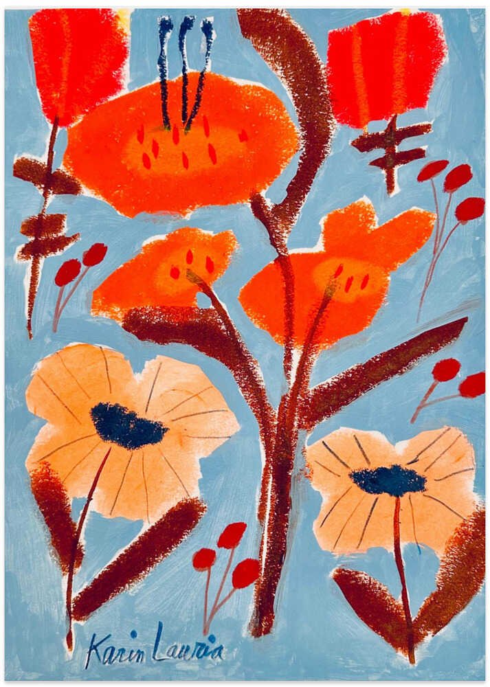 Rote, orangefarbene und pfirsichfarbene Blumen von Karin Lauria