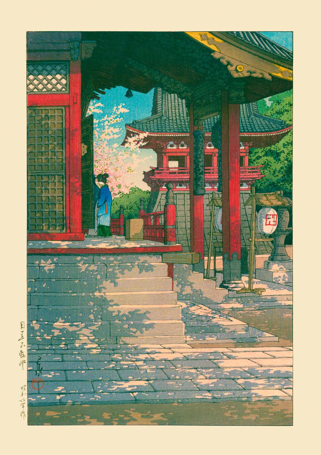 Meguro Fudo Tempel Kunstdruck von Hasui