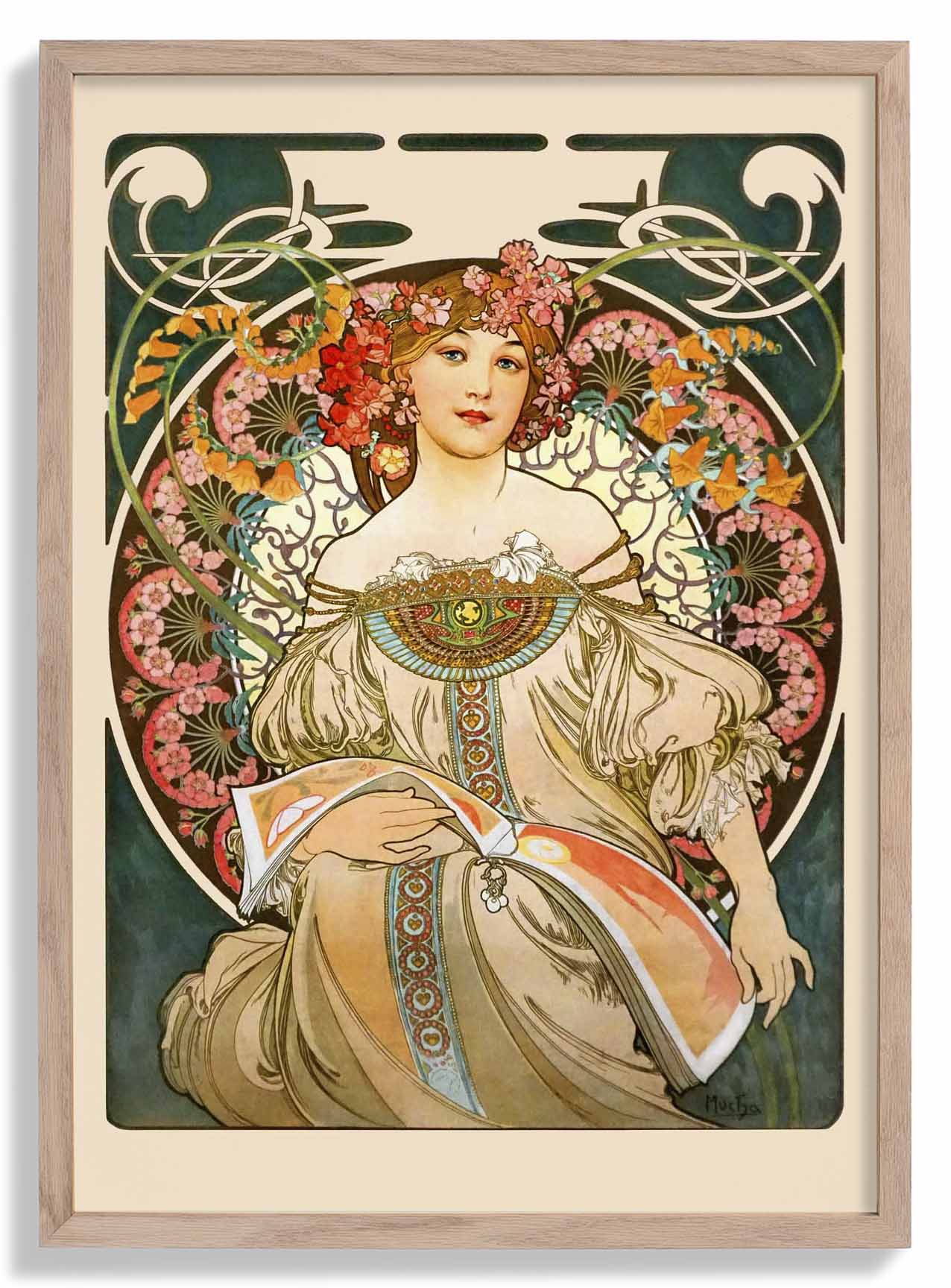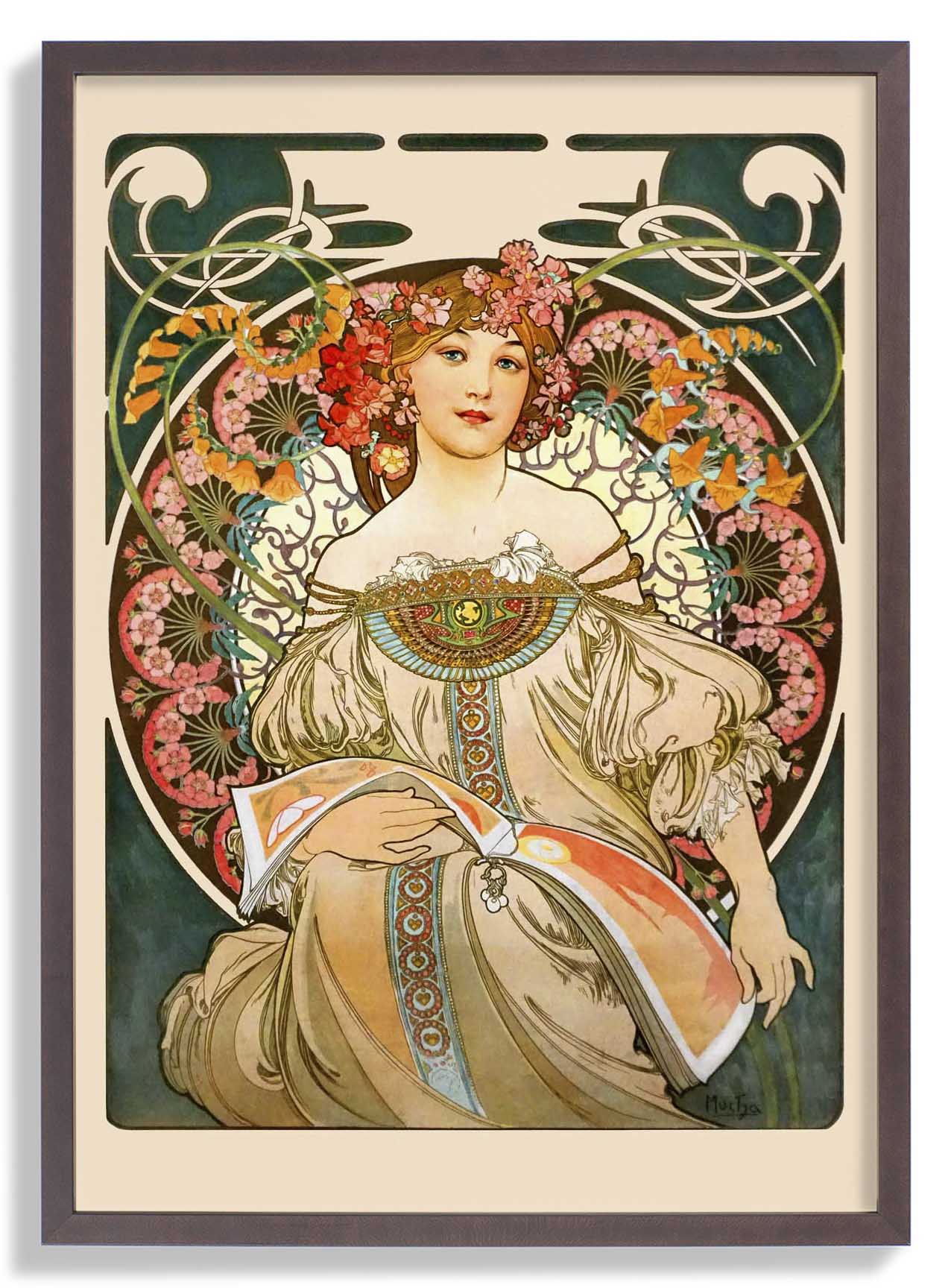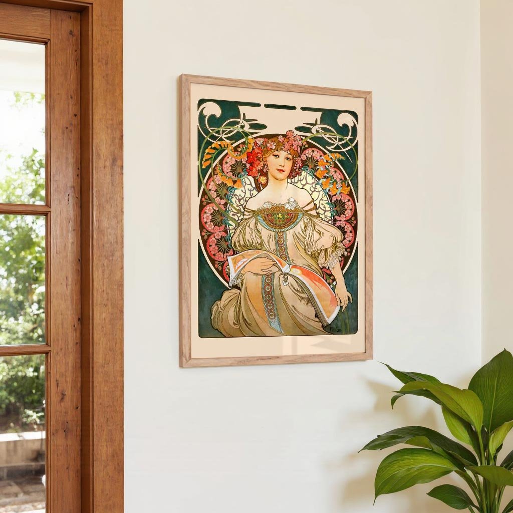 Alphonse Mucha war ein tschechischer Künstler und Designer, der vor allem dafür bekannt ist, den Jugendstil populär gemacht zu haben. Seine berühmten Poster zeigen Frauen, oft umgeben von Blumenmotiven, geschwungenen Linien und detailreichen Hintergründen.