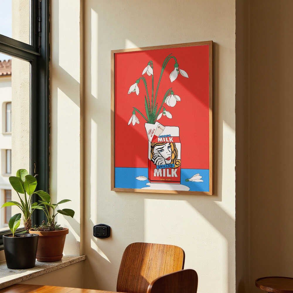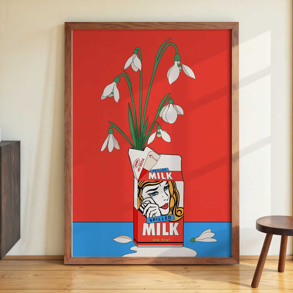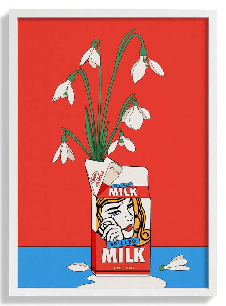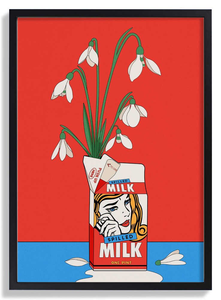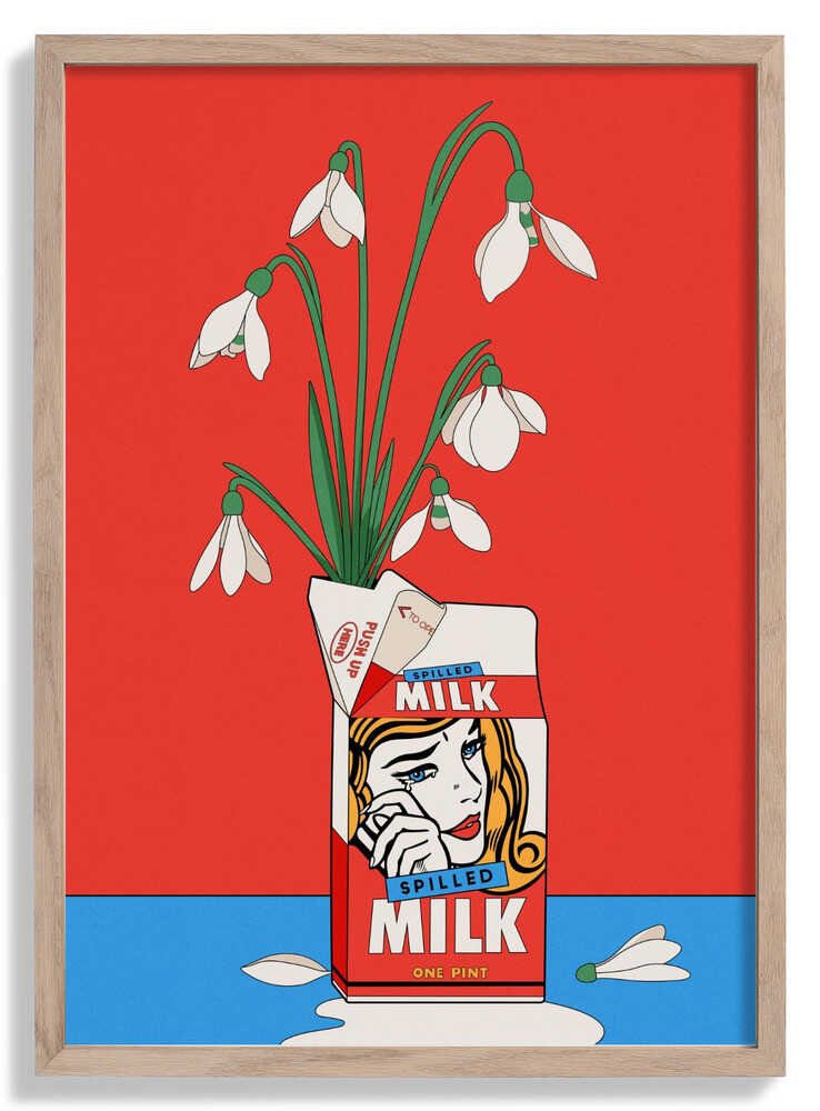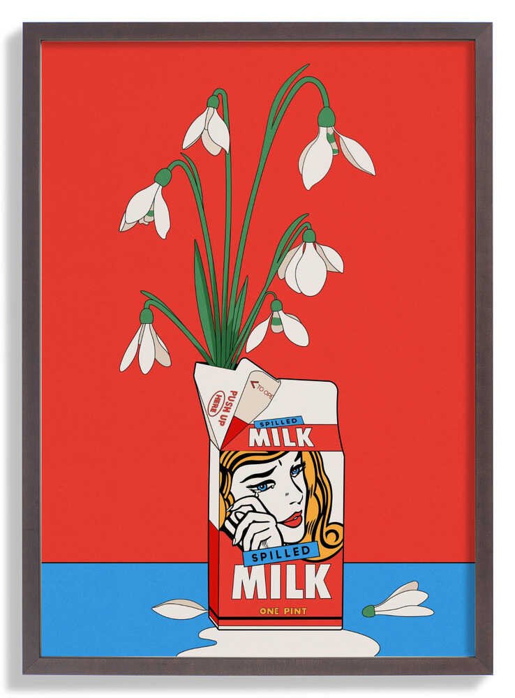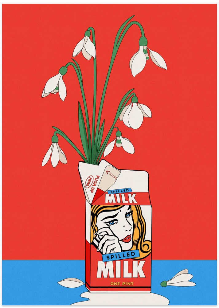 Schneeglöckchen in umgekippter Milchtüte Retro Illustration von Retrodrome