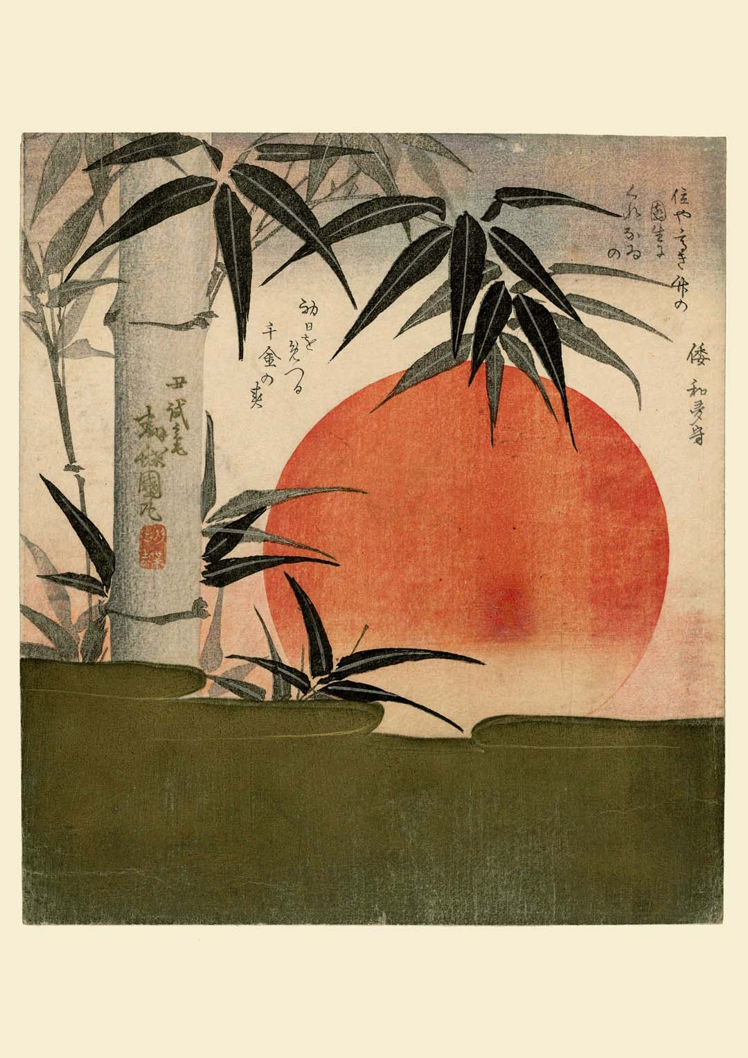 Bambus und aufgehende Sonne von Utagawa Kunimaru
