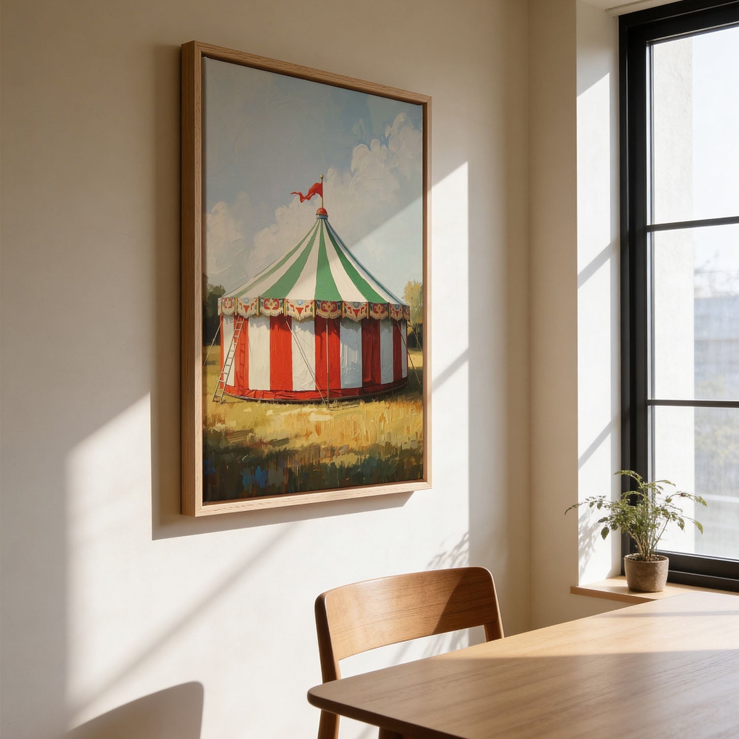 Classic Circus Tent by Ohkimiko reads as a historical study of illustration, built on considered visual decisions and a sustained sense of composition. The vertical composition draws the eye across the surface, where the subject is set against a quieter background. The feel is of a piece pulled from an earlier era, quieter and more considered than contemporary design, yet still confident on a modern wall.