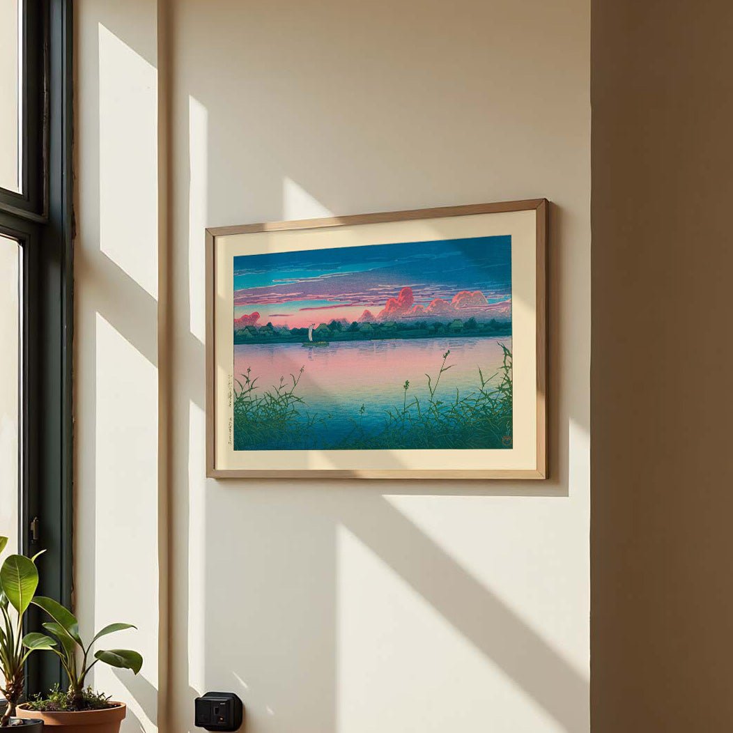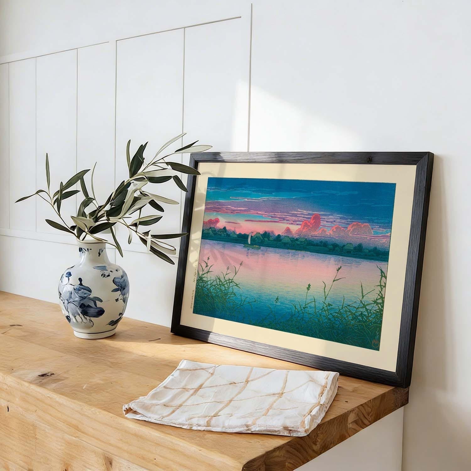Früher Herbst in Urayasu Kunstdruck von Hasui