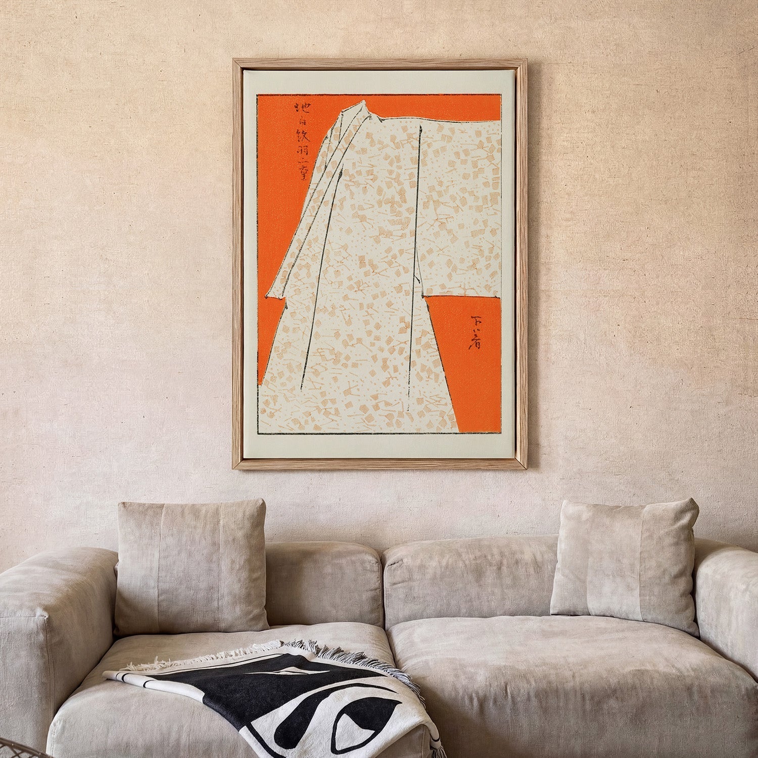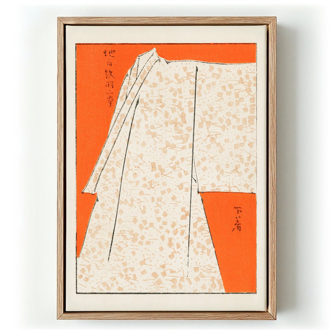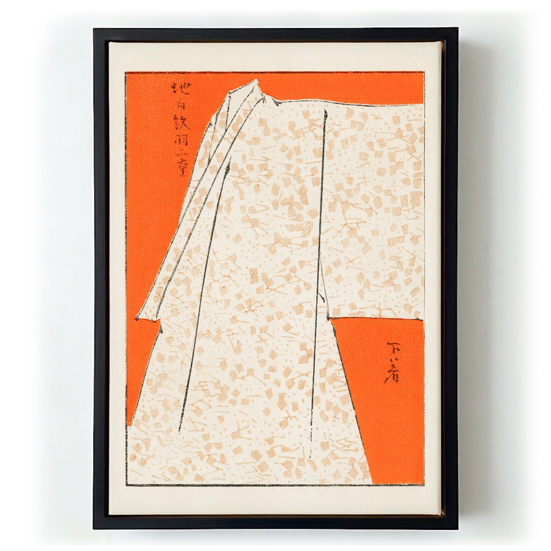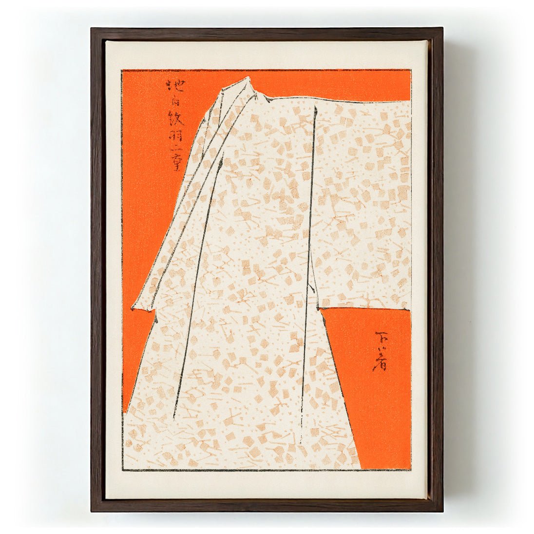 Japanese Robe von Watanabe Seitei ist eine detailreiche Studie eines traditionellen japanischen Gewands, ausgeführt mit der naturalistischen Präzision, die Seiteis Stellung an der Schnittstelle japanischer und westlicher Maltraditionen in der Meiji-Zeit kennzeichnete. Seitei war vor allem für seine Kacho-ga-Kompositionen mit Vögeln und Blumen bekannt, doch sein Gespür für dekorative Oberfläche — das Zusammenspiel von Muster, Faltenwurf und Stoffgewicht — ist in diesem Werk vollständig präsent. Das Gewand wird zugleich zum Sujet und zur Komposition, seine dekorativen Elemente mit derselben Sorgfalt arrangiert, die er Naturformen entgegenbrachte.