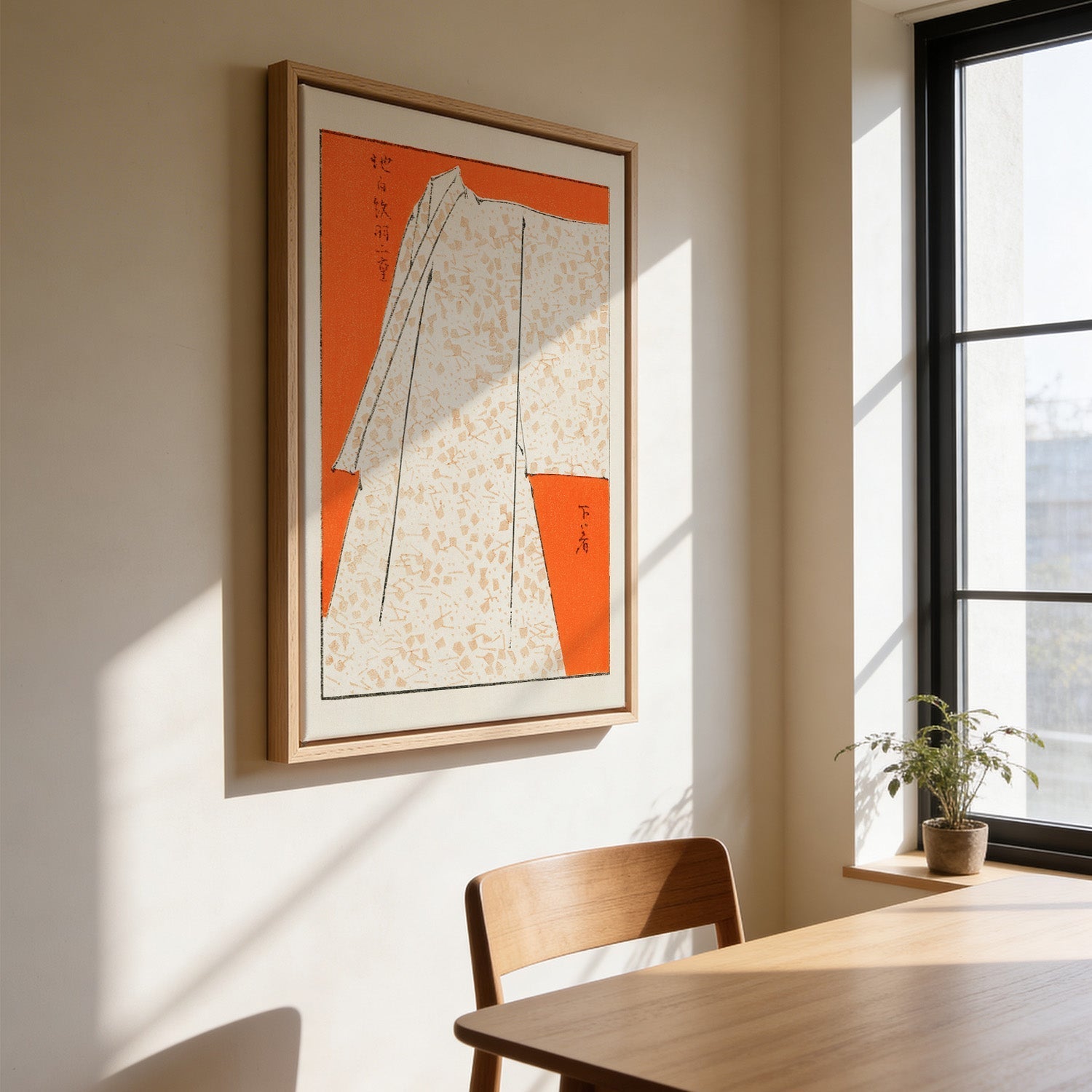 Kontrast schlägt Matchen — Du musst die Wandfarbe nicht genau treffen. Ein Print in dunklen Tönen an einer hellen Wand oder ein starkes Motiv in einem ruhigen Raum wirkt oft viel spannender als eine perfekte Farbübereinstimmung.