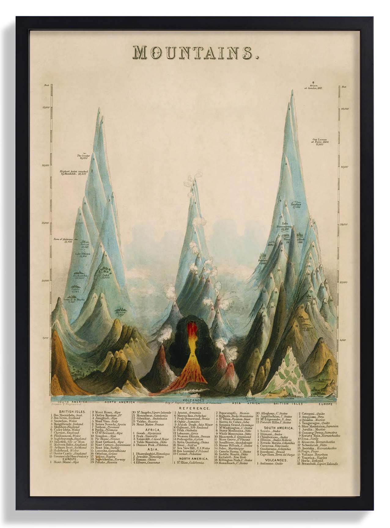 Wir verwenden ein Standard-Rahmenprofil: 2 cm x 2 cm (Vorderseite x Tiefe von der Wand). Die Endmaße des gerahmten Drucks erhöhen sich um 2 cm in Breite und Höhe zur gewählten Druckgröße.