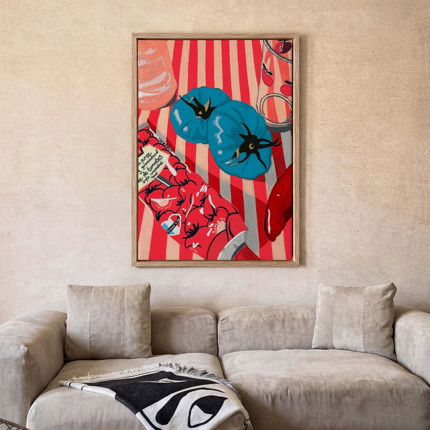 Contrast beats matching — You don’t need to match your wall colour exactly. A deep-toned print on a light wall, or a bold piece in a neutral room, often looks far more interesting than a perfect colour match.