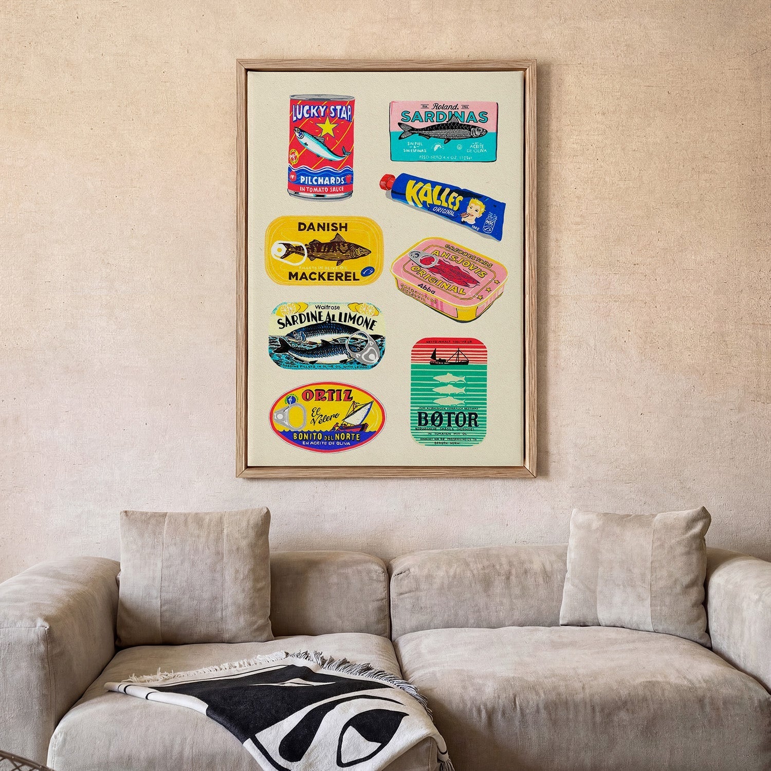 Contrast beats matching — You don’t need to match your wall colour exactly. A deep-toned print on a light wall, or a bold piece in a neutral room, often looks far more interesting than a perfect colour match.