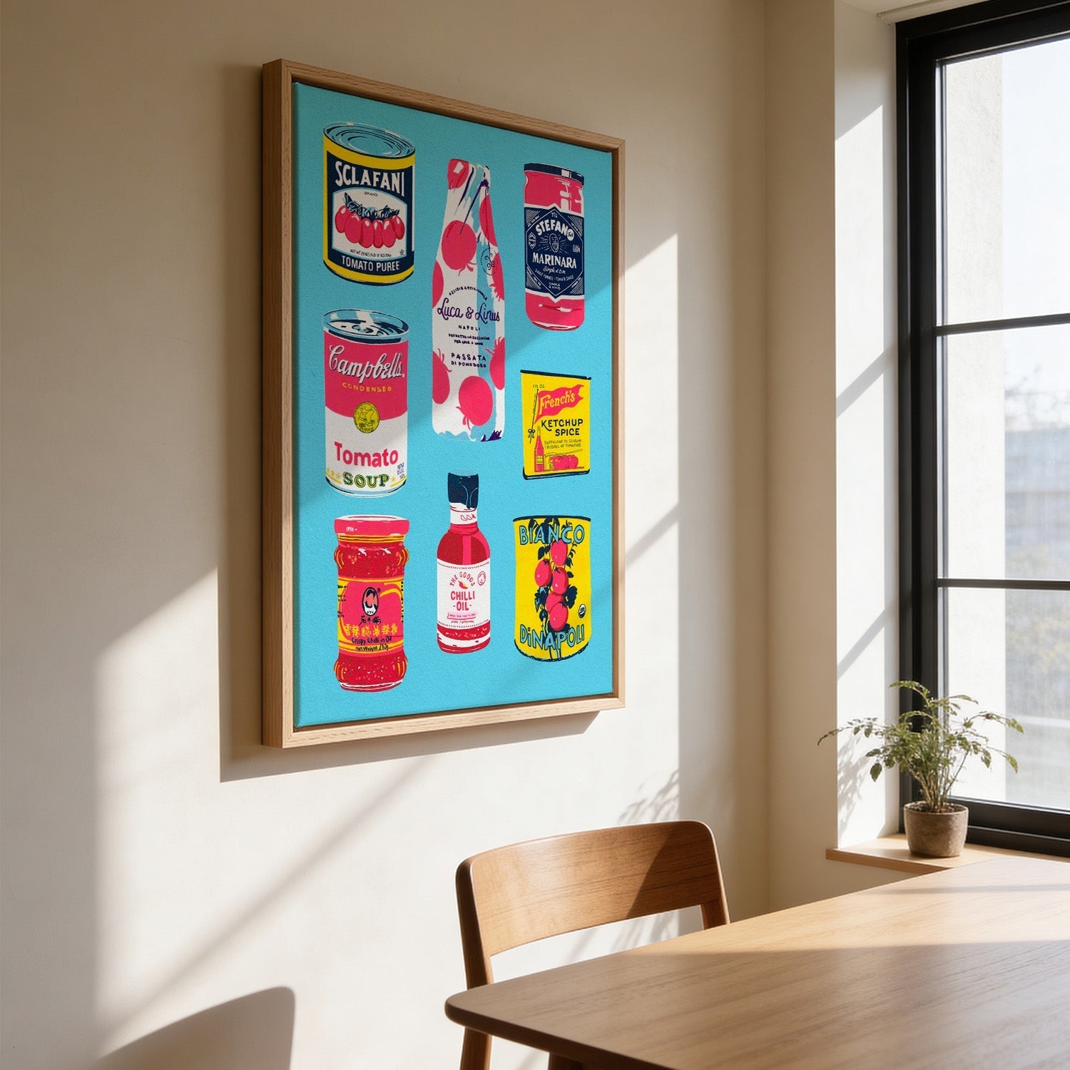 El contraste gana al conjunto — No hace falta que combines exactamente con el color de tu pared. Una impresión en tonos oscuros sobre una pared clara, o una pieza llamativa en una habitación neutra, suele verse mucho más interesante que una combinación perfecta.