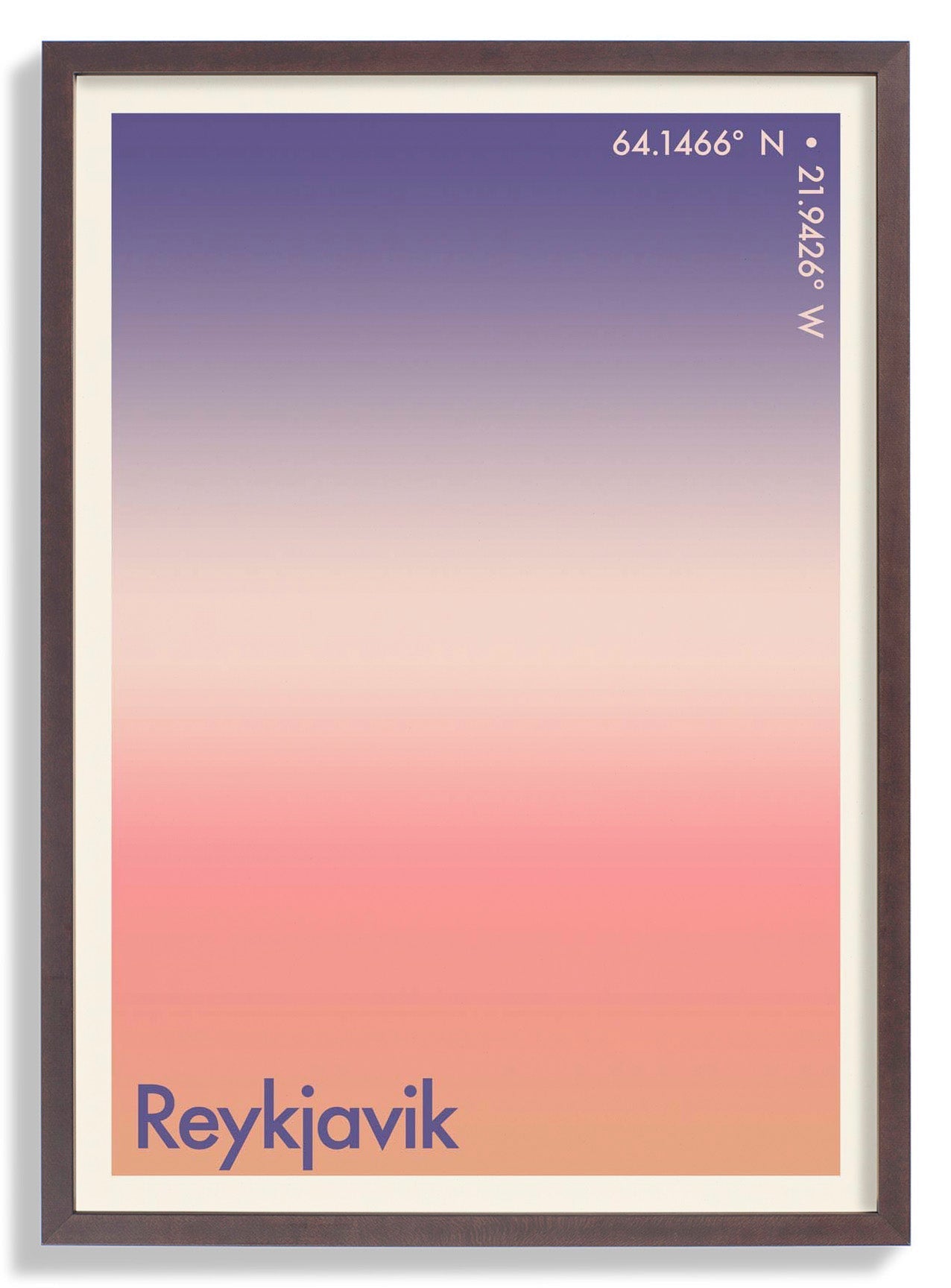 Usamos un perfil de marco estándar: 2 cm (0,8" pulgadas) x 2 cm (0,8" pulgadas) (cara frontal x profundidad desde la pared). Las dimensiones finales de la impresión enmarcada añaden 2 cm al ancho y alto del tamaño de impresión seleccionado.