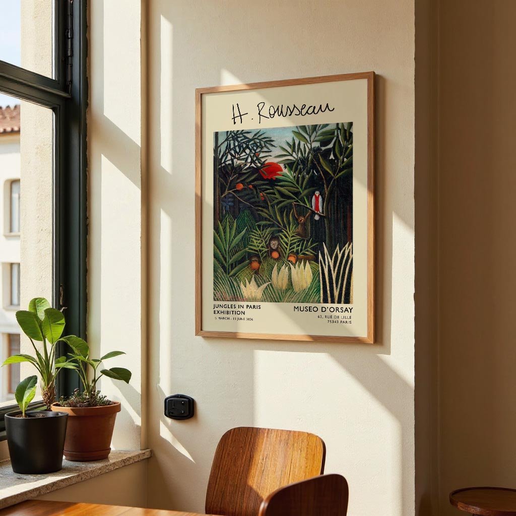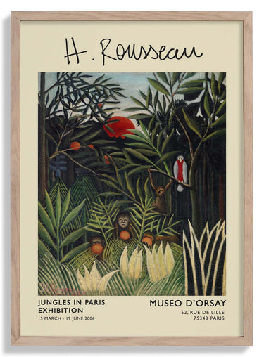 Cartel de la exposición Monos y loros Rousseau