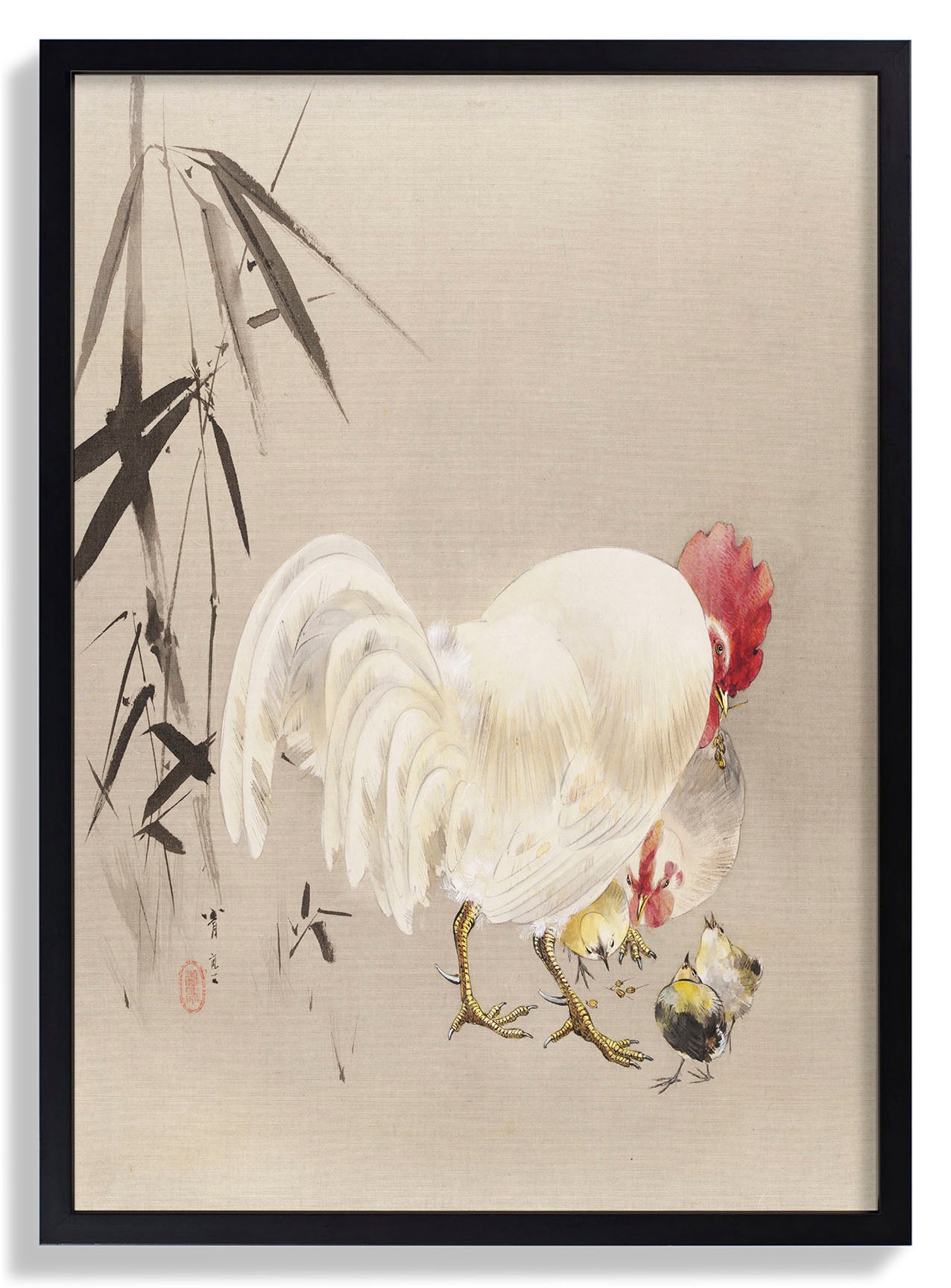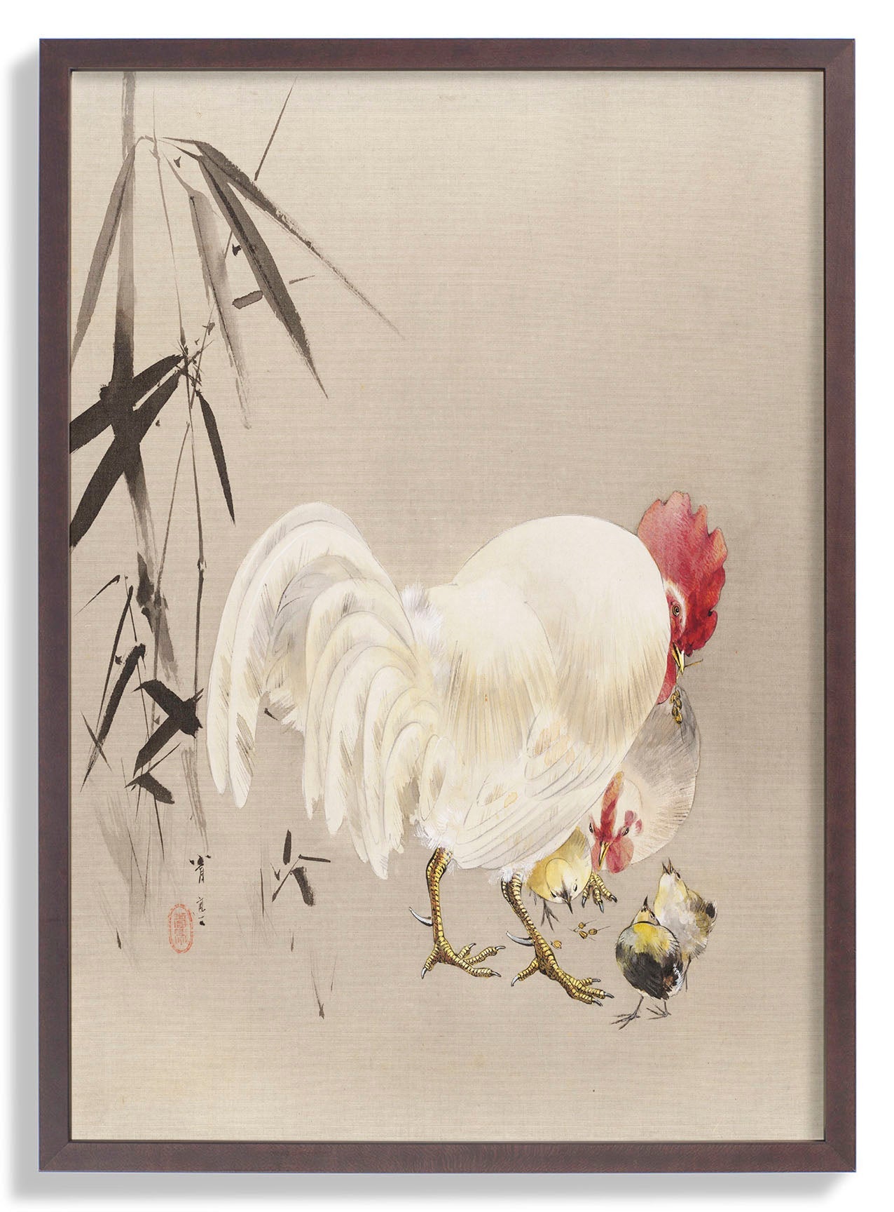 Gallo y gallina con pollitos de WANTANABE SEITEI