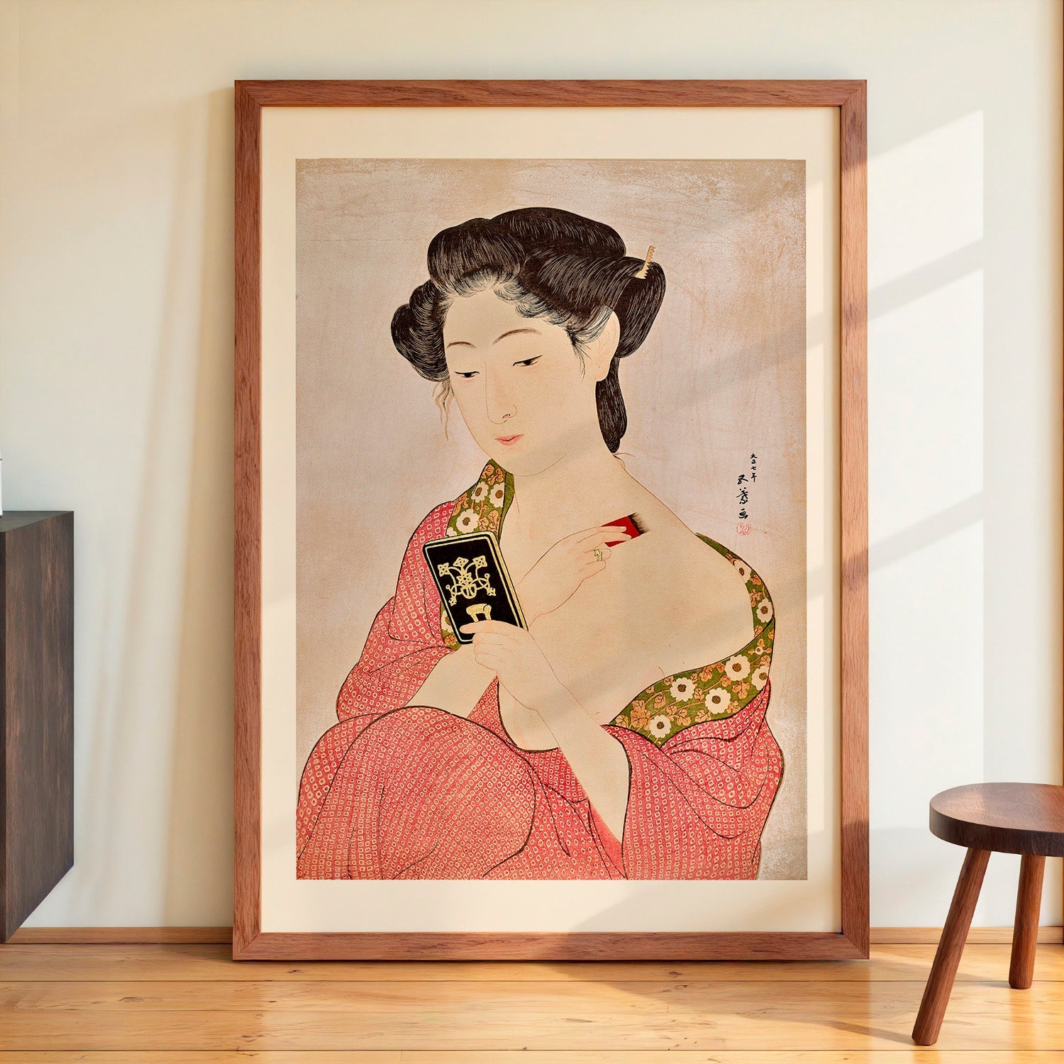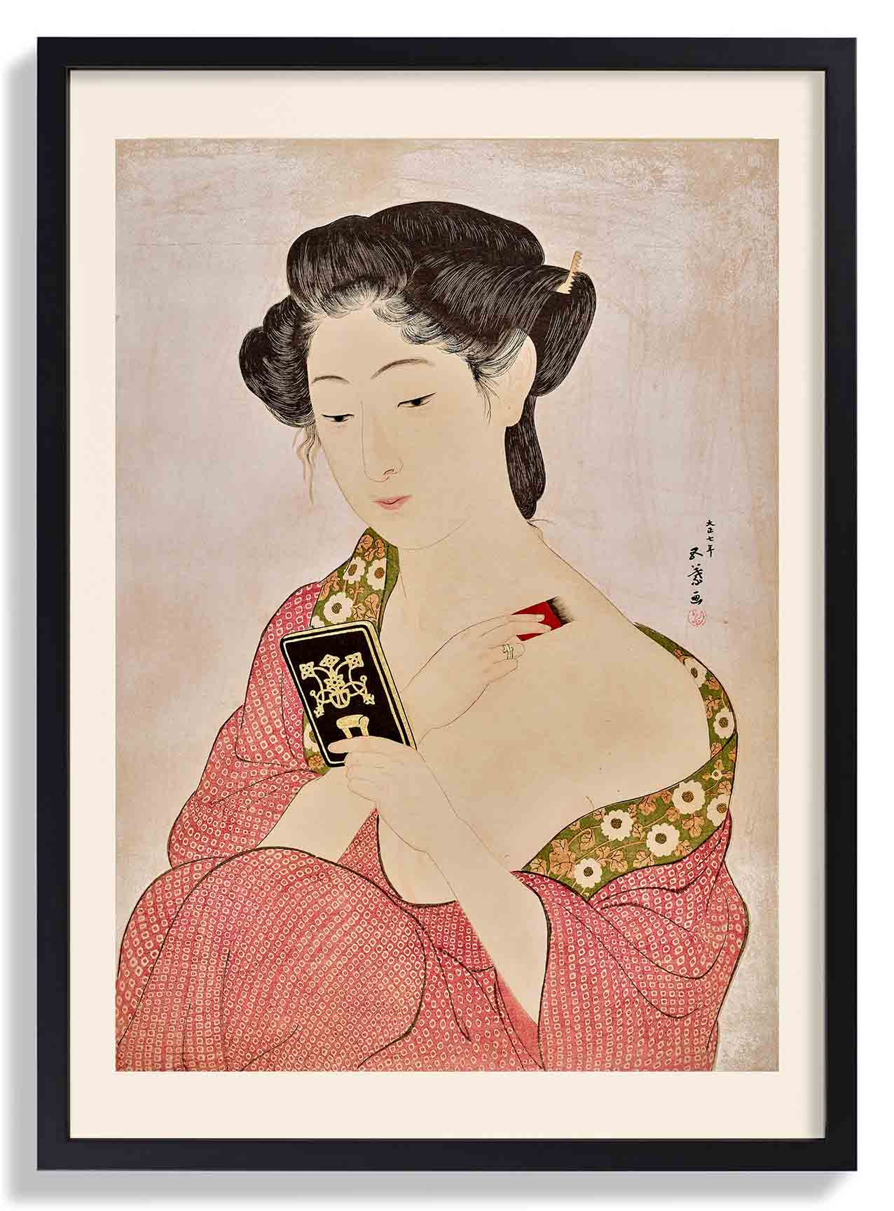 Goyō Hashiguchi (1880–1921) was a Japanese artist and a key figure in the shin-hanga movement, which revived traditional ukiyo-e woodblock prints with modern sensibilities. Trained at the Tokyo School of Fine Arts, he produced only fourteen prints, now regarded as masterpieces, and helped renew interest in classical ukiyo-e through both his art and writings.