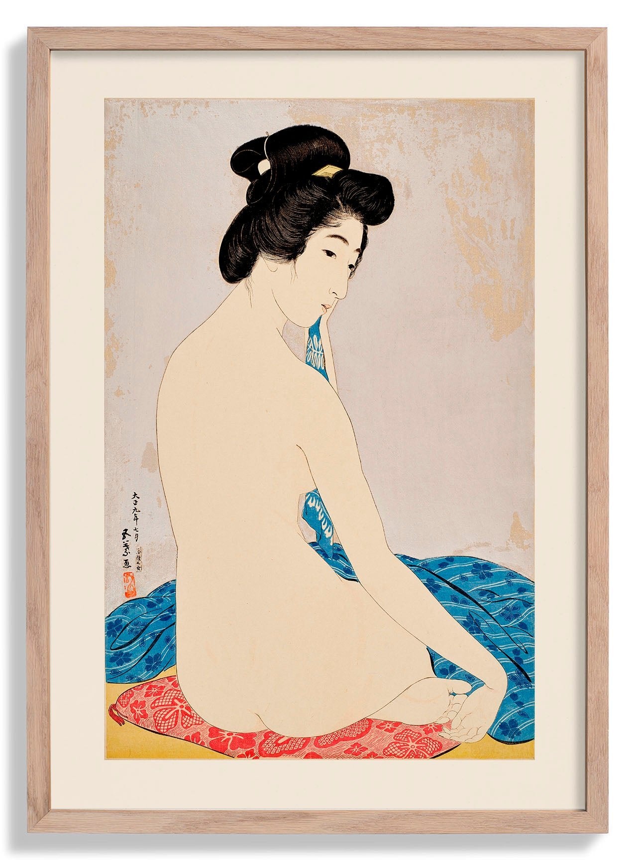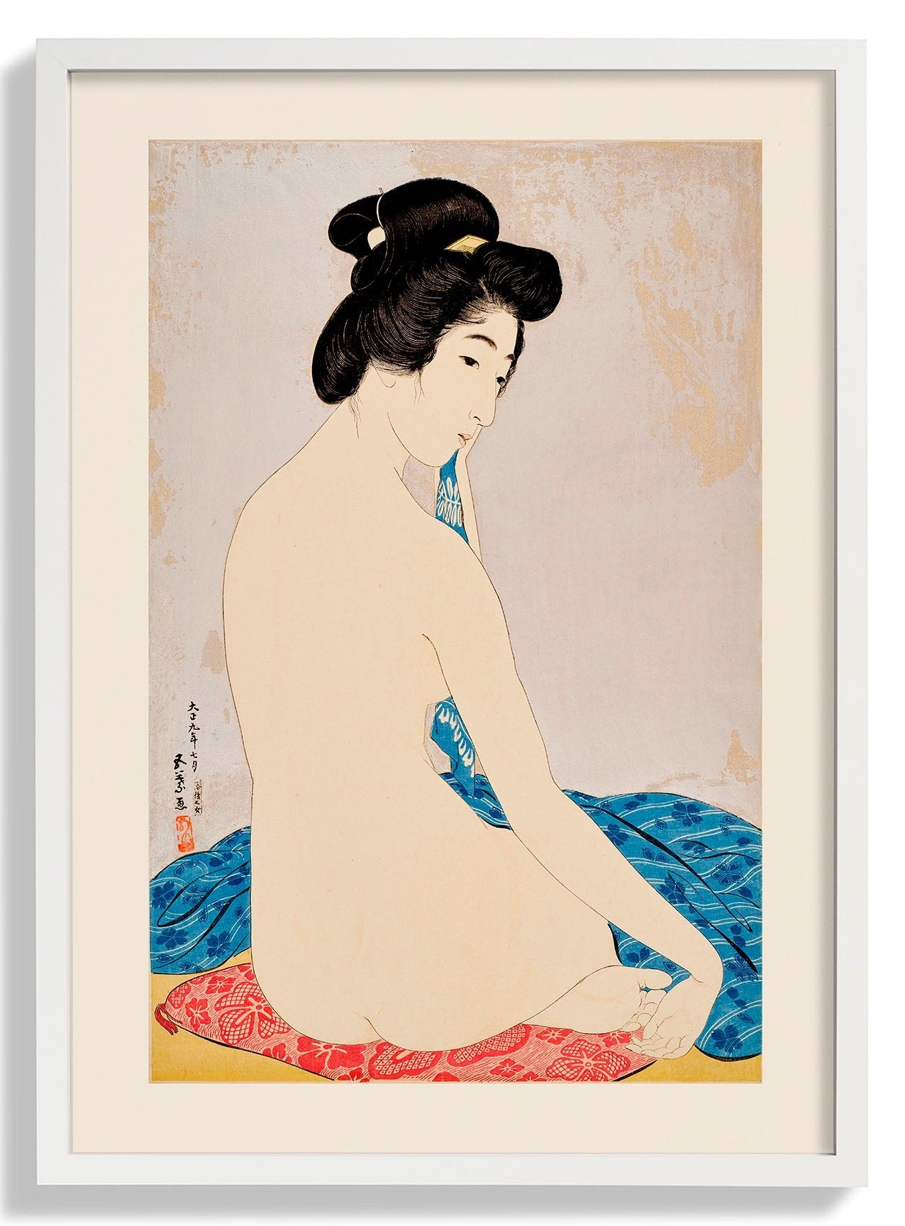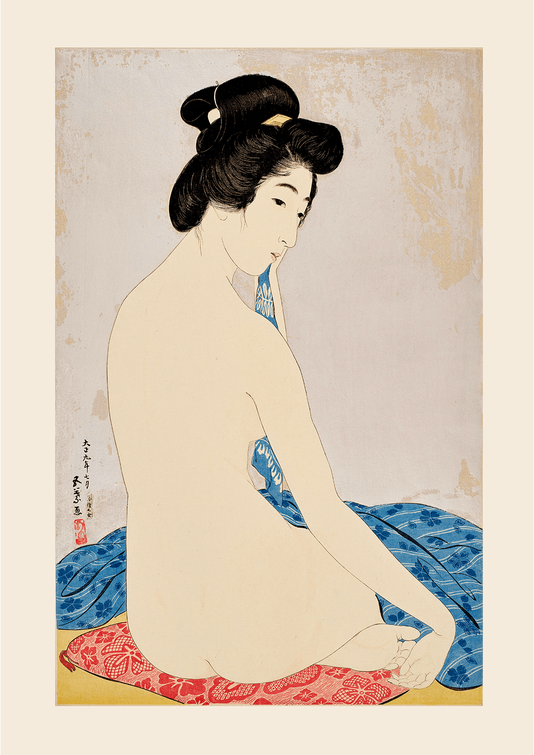 Goyō Hashiguchi (1880–1921) was a Japanese artist and a key figure in the shin-hanga movement, which revived traditional ukiyo-e woodblock prints with modern sensibilities. Trained at the Tokyo School of Fine Arts, he produced only fourteen prints, now regarded as masterpieces, and helped renew interest in classical ukiyo-e through both his art and writings.