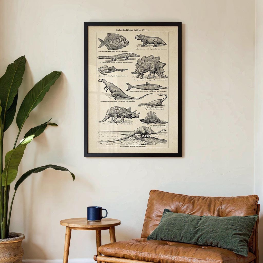 Cartel Antiguo Dinosaurios y Fósiles
