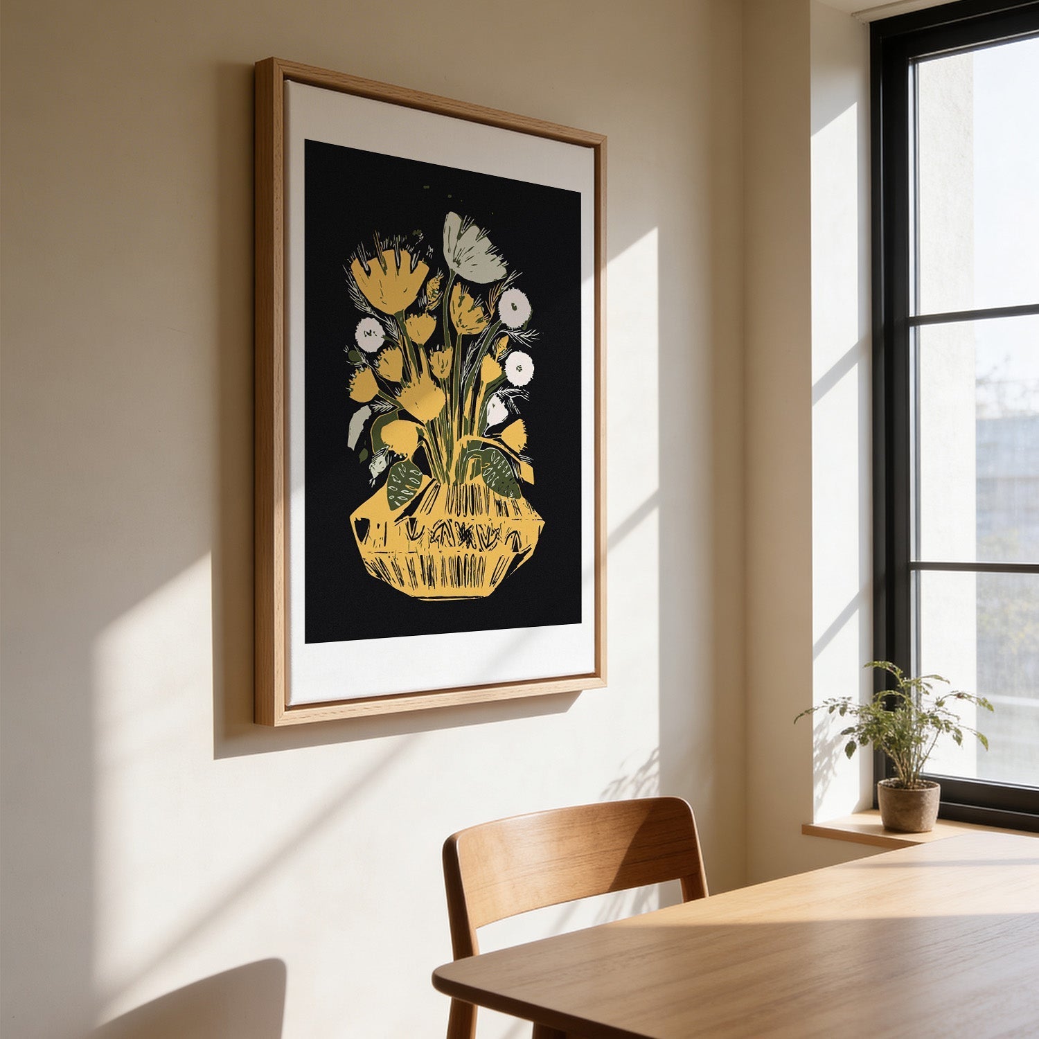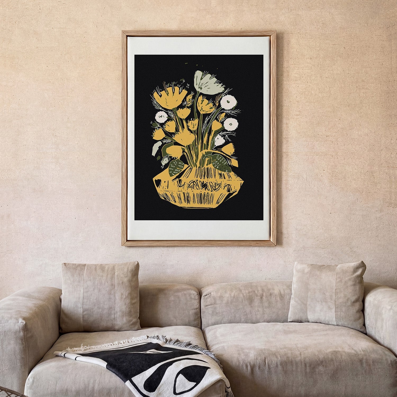 Nuestras impresiones en lienzo ofrecen un aspecto más elevado, tipo galería. Cada obra se imprime sobre lienzo de algodón con textura y se remata con un elegante marco flotante, aportando profundidad, carácter y una presencia más sofisticada en la pared. Como no hay cobertura de cristal, no hay reflejos, lo que convierte el lienzo en una excelente opción para un look más suave y más premium en conjunto.