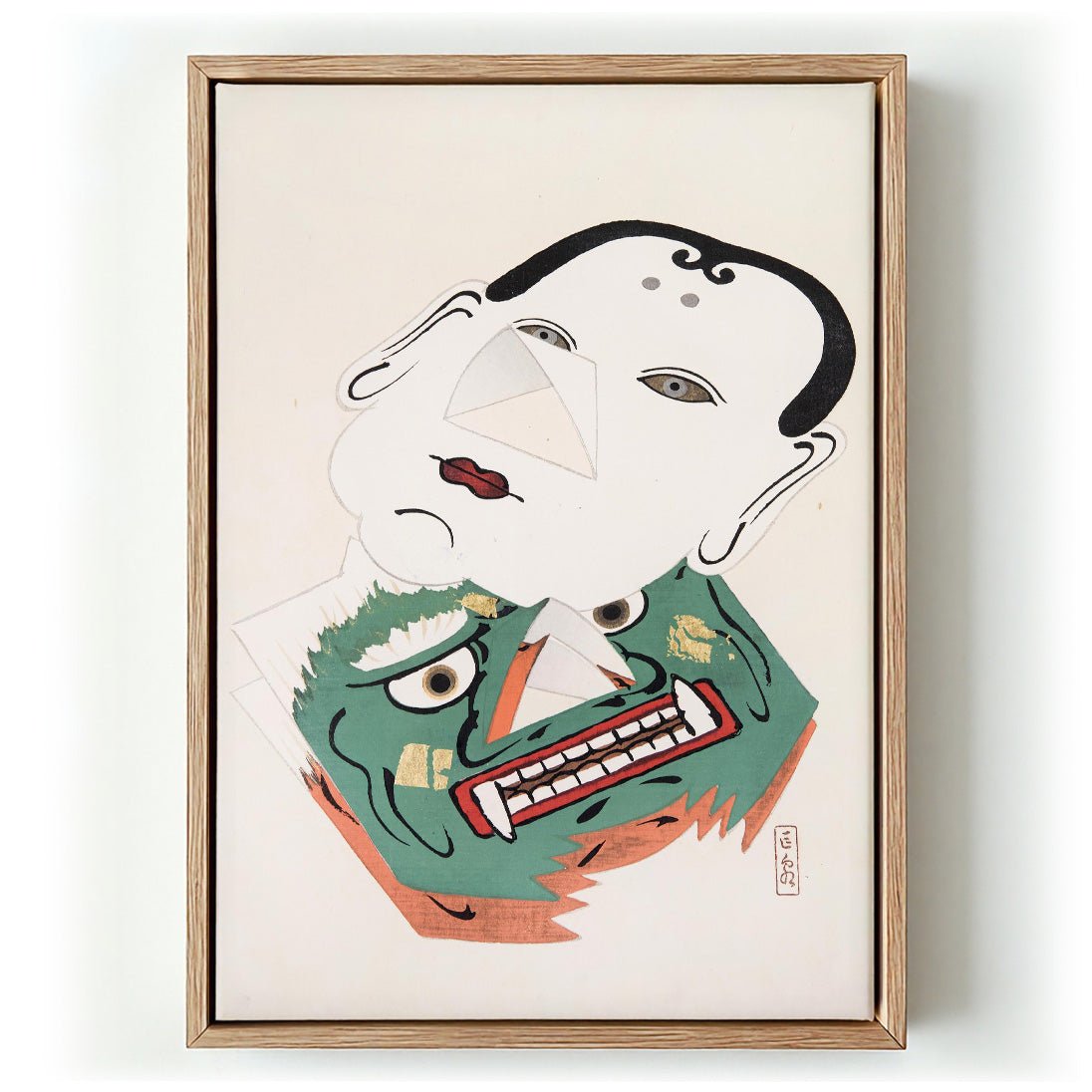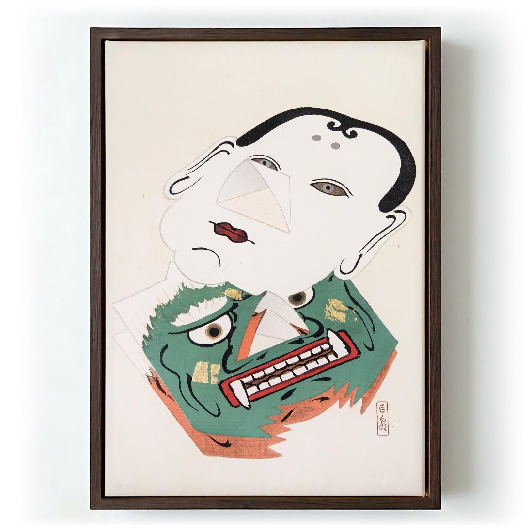 La lámina 042 de la documentación de Kawasaki Kyosen sobre objetos folclóricos japoneses presenta su tema con la devoción de un observador genuino. Kyosen pasó décadas recorriendo Japón para registrar objetos hechos a mano — juguetes, vasijas, curiosidades regionales — que llevaban en igual medida identidad local y tradición artesanal. Sus composiciones otorgan a estos objetos modestos una presencia digna: centrados, bien iluminados, rodeados del tipo de espacio que invita a mirar con atención. El estilo se sitúa entre la ilustración y el registro, formal sin resultar rígido.