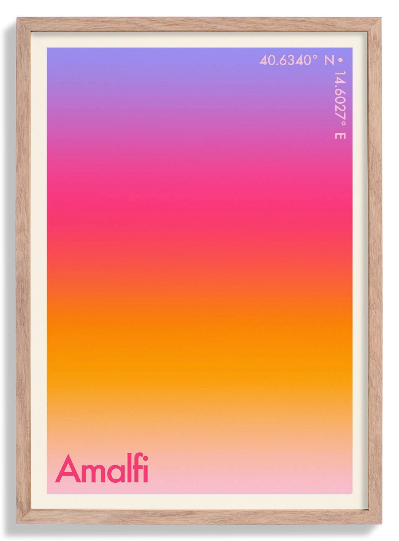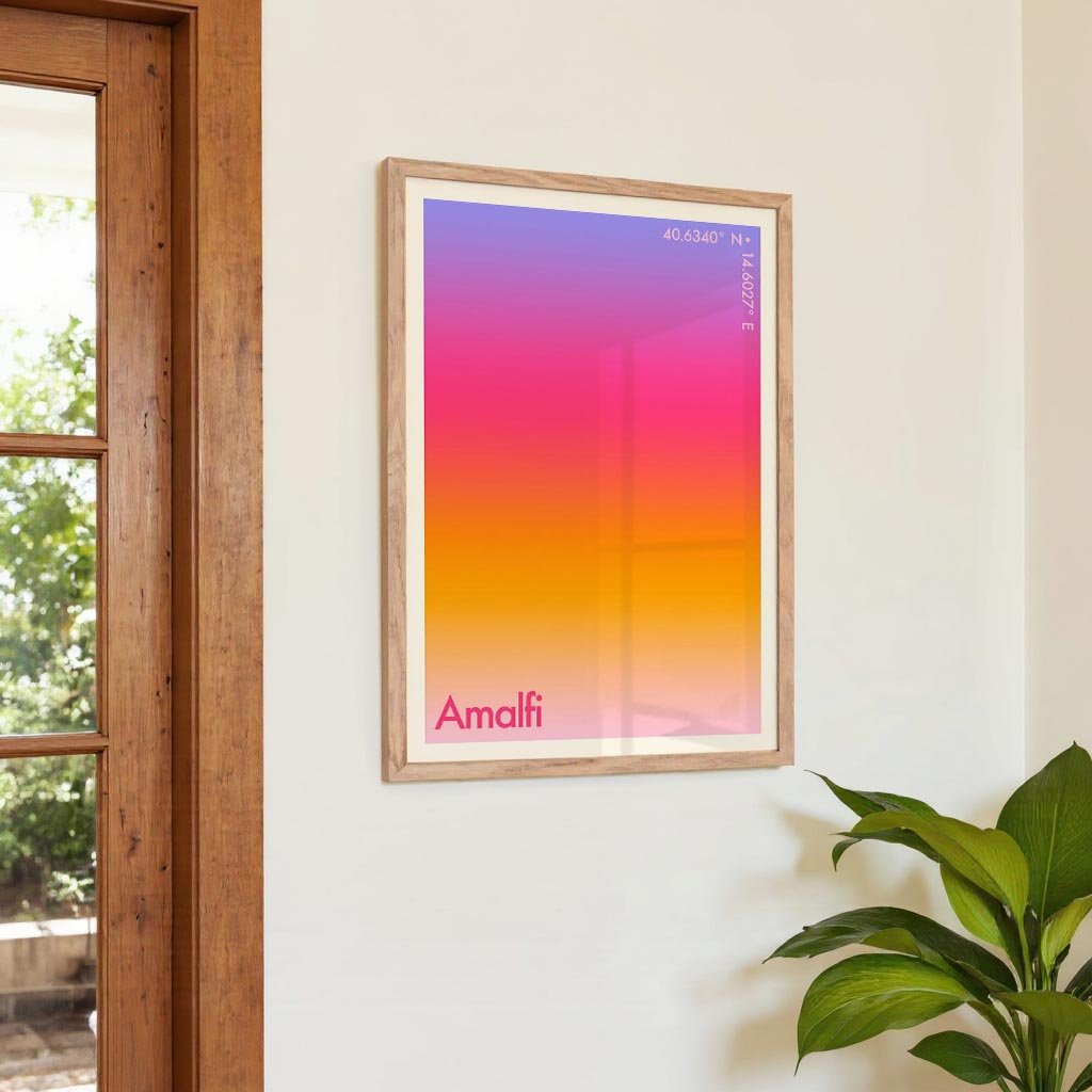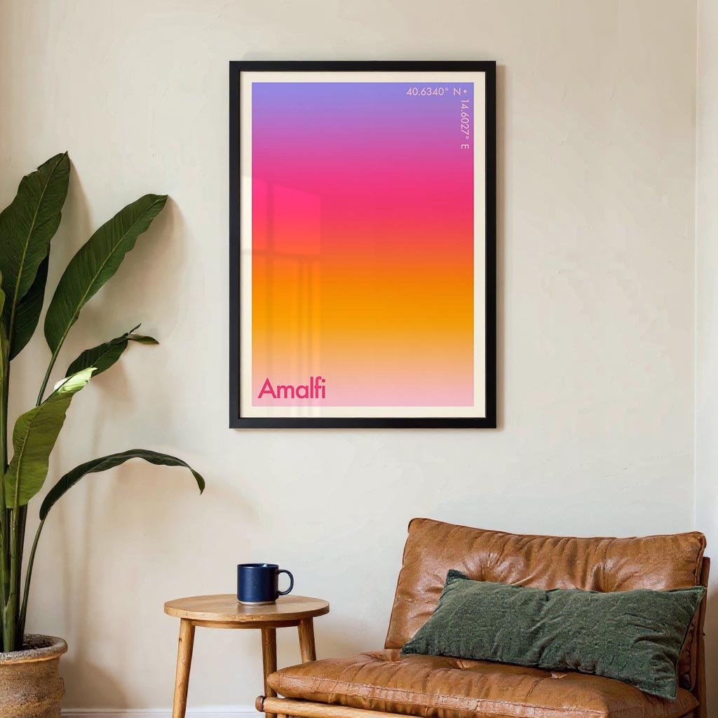 Impression d'art de la ville d'Amalfi au coucher du soleil
