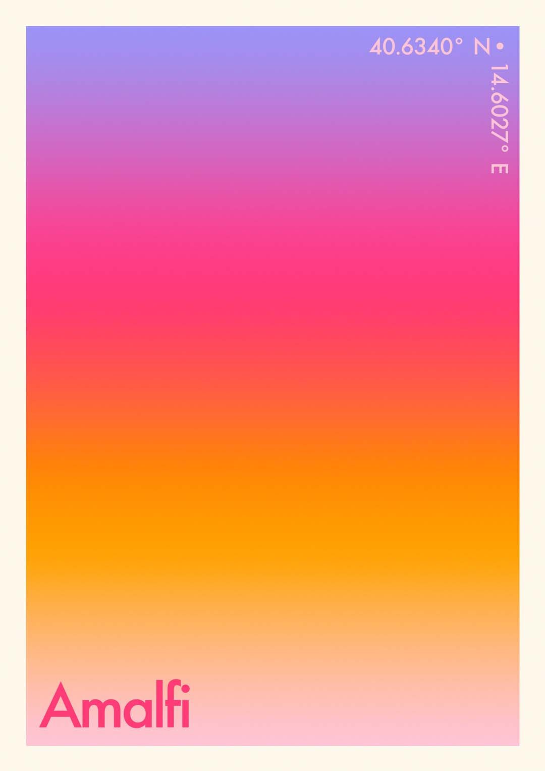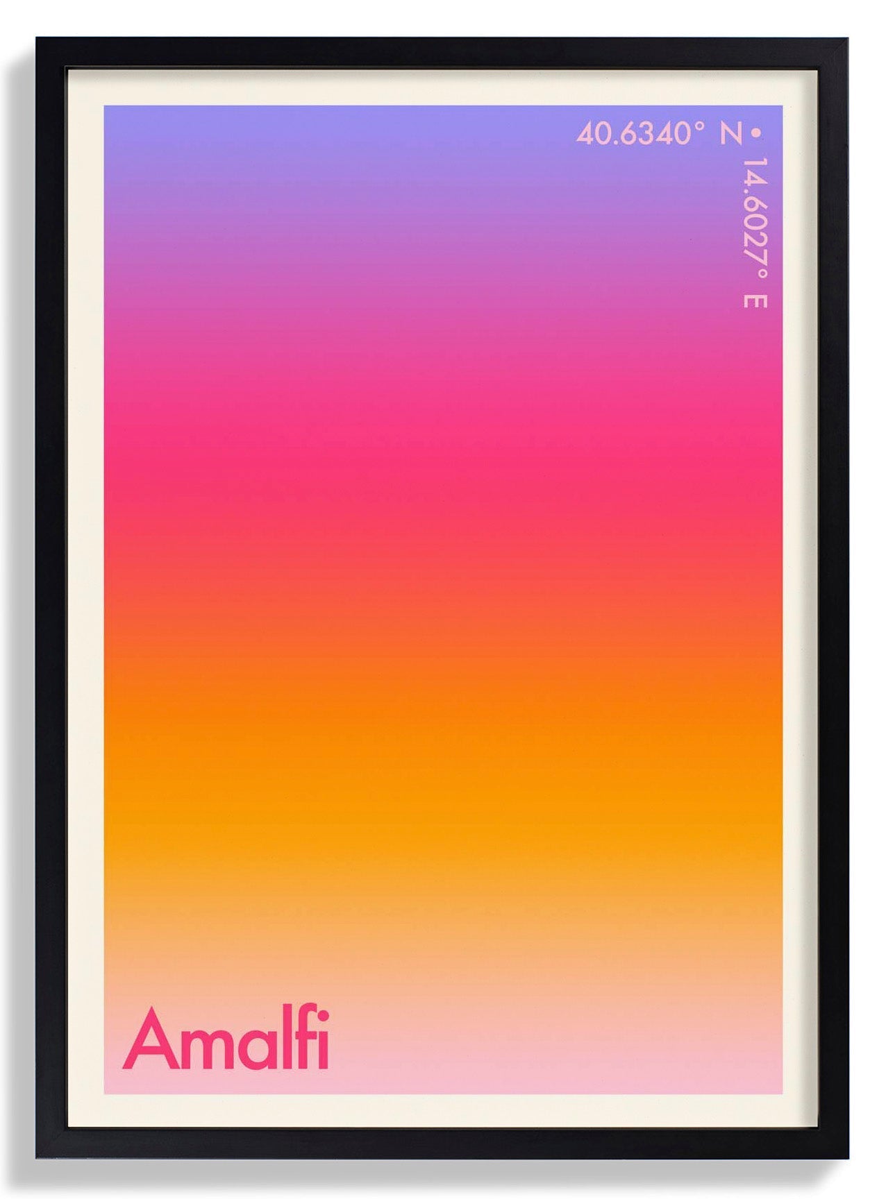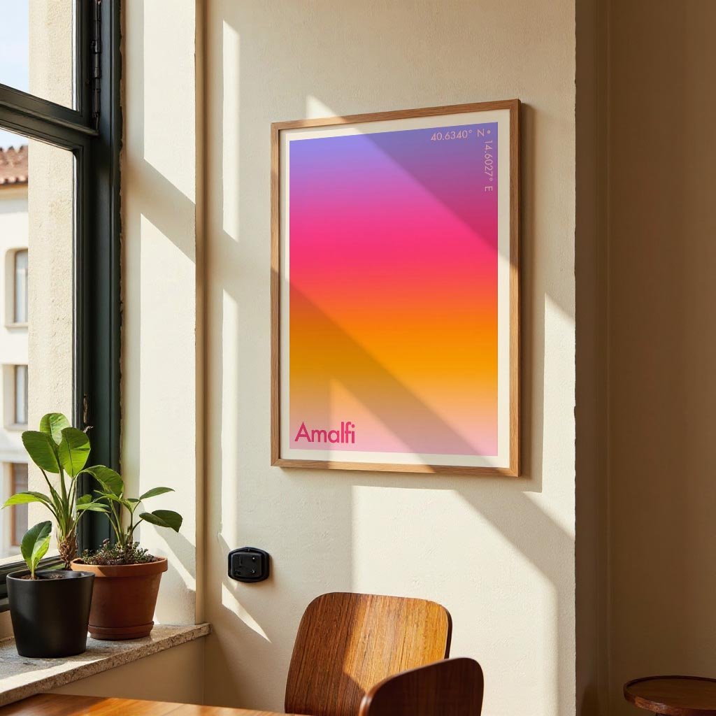 Impression d'art de la ville d'Amalfi au coucher du soleil