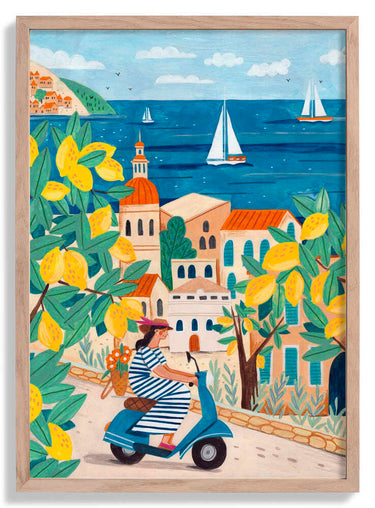 Travel poster woman on the Amalfi coast, Italy by Caroline Bonne Müller