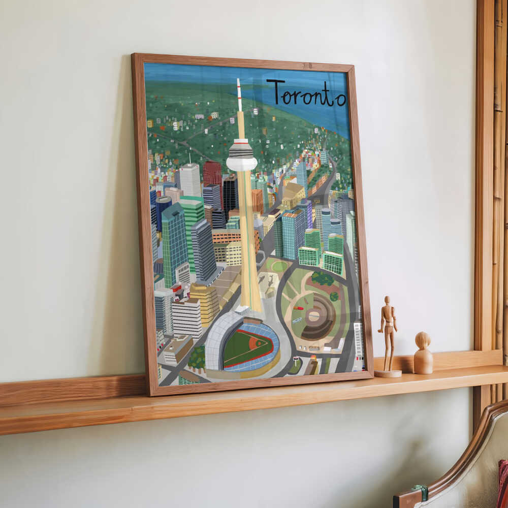 Toronto, Canada CN Tower with Rogers Stadium by Illustrator Carla Daly