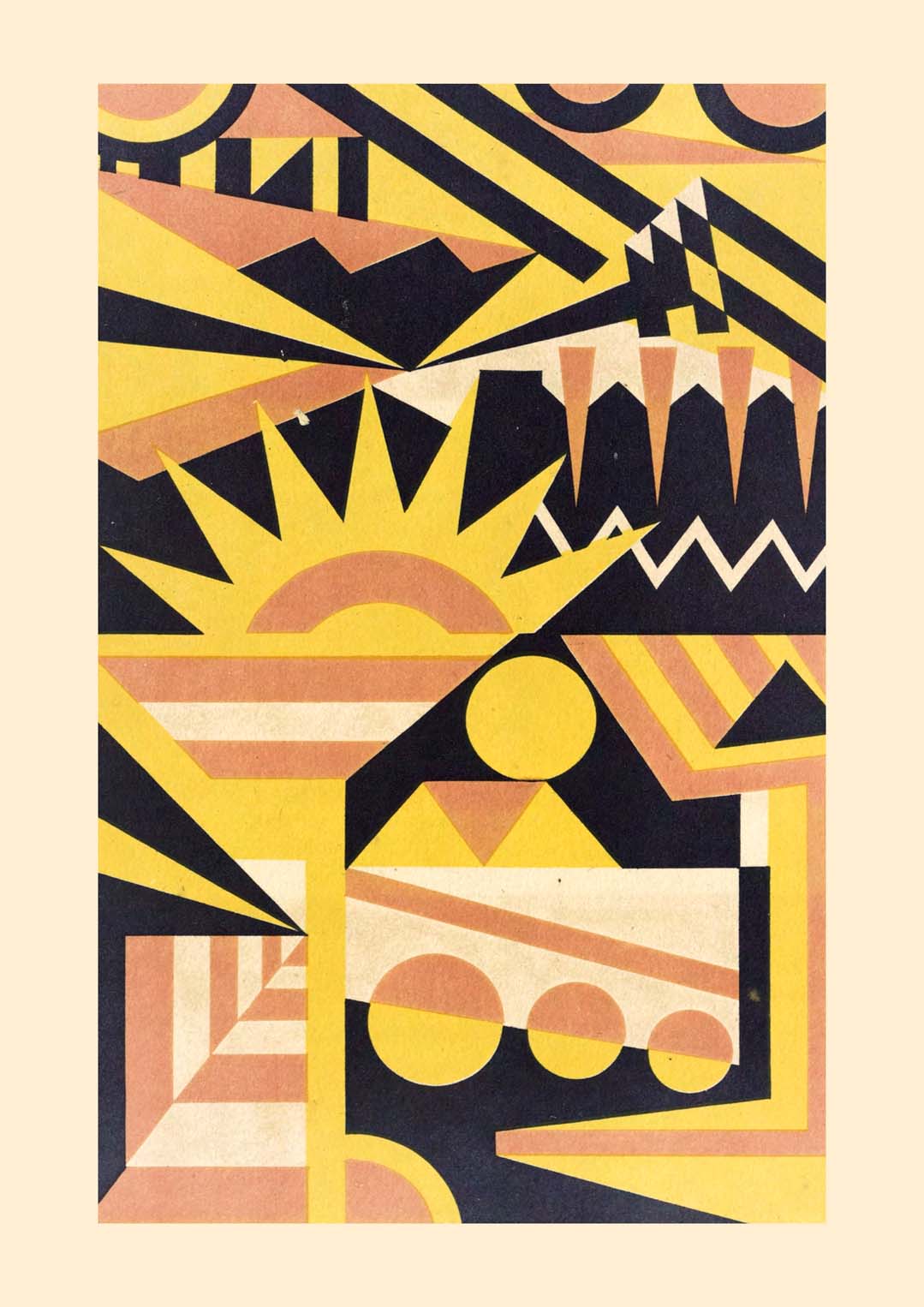 In 1930, he published Abstract Pattern Portfolio, a collection of geometric designs influenced by European Art Deco and Constructivism. Unlike many artists of his time, Mizuki used mathematical construction, clear geometry, and precise color combinations in his work.