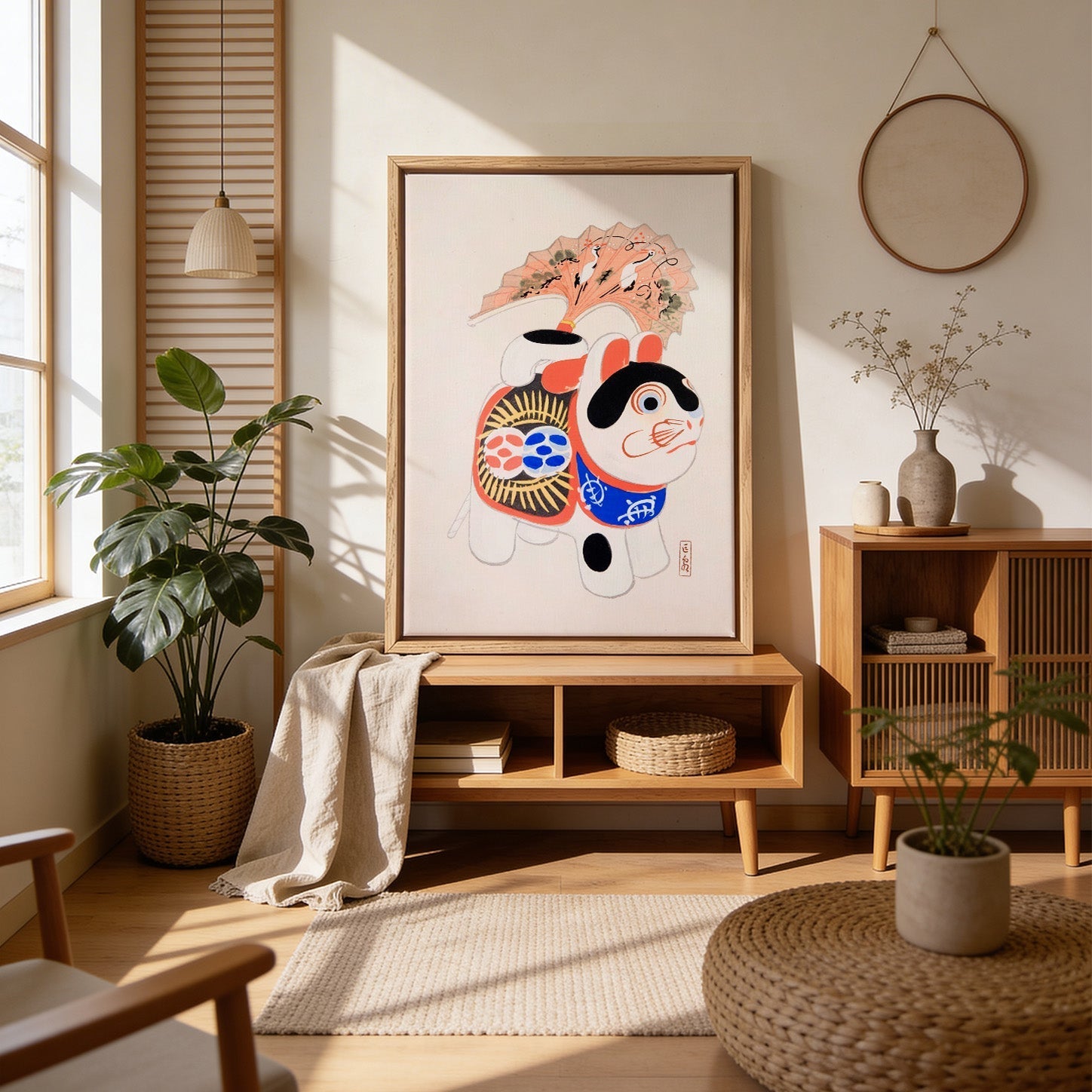 Cette impression sur toile apporte une chaleur tactile qui convient parfaitement au sujet de Kyosen. Produite dans notre studio de Berlin, la surface tissée ajoute une profondeur subtile et du corps aux coups de pinceau, offrant aux pigments peints une richesse qui trouve naturellement sa place sur la toile.