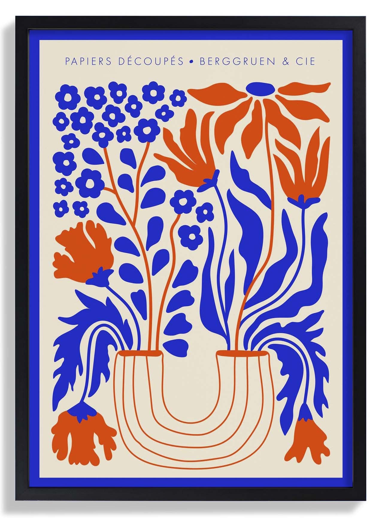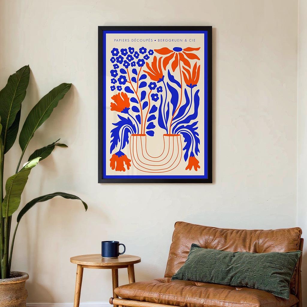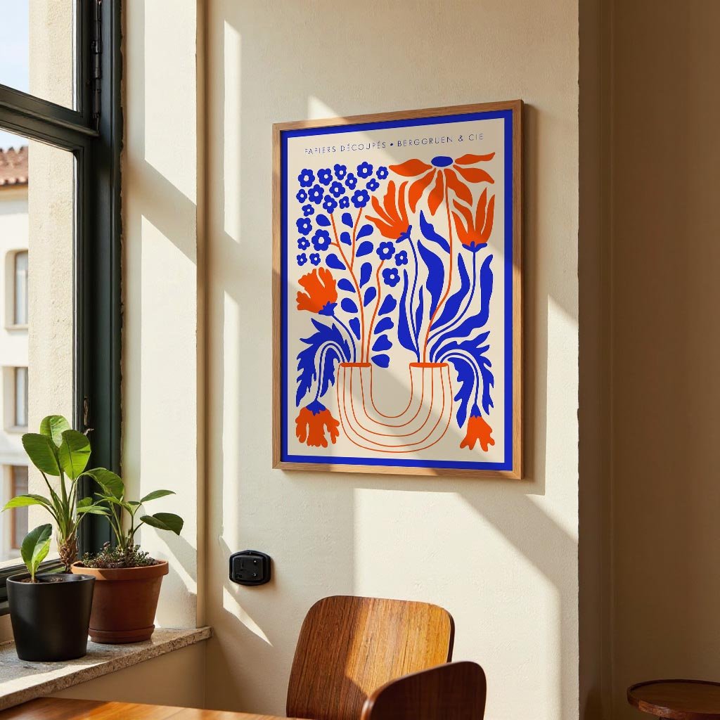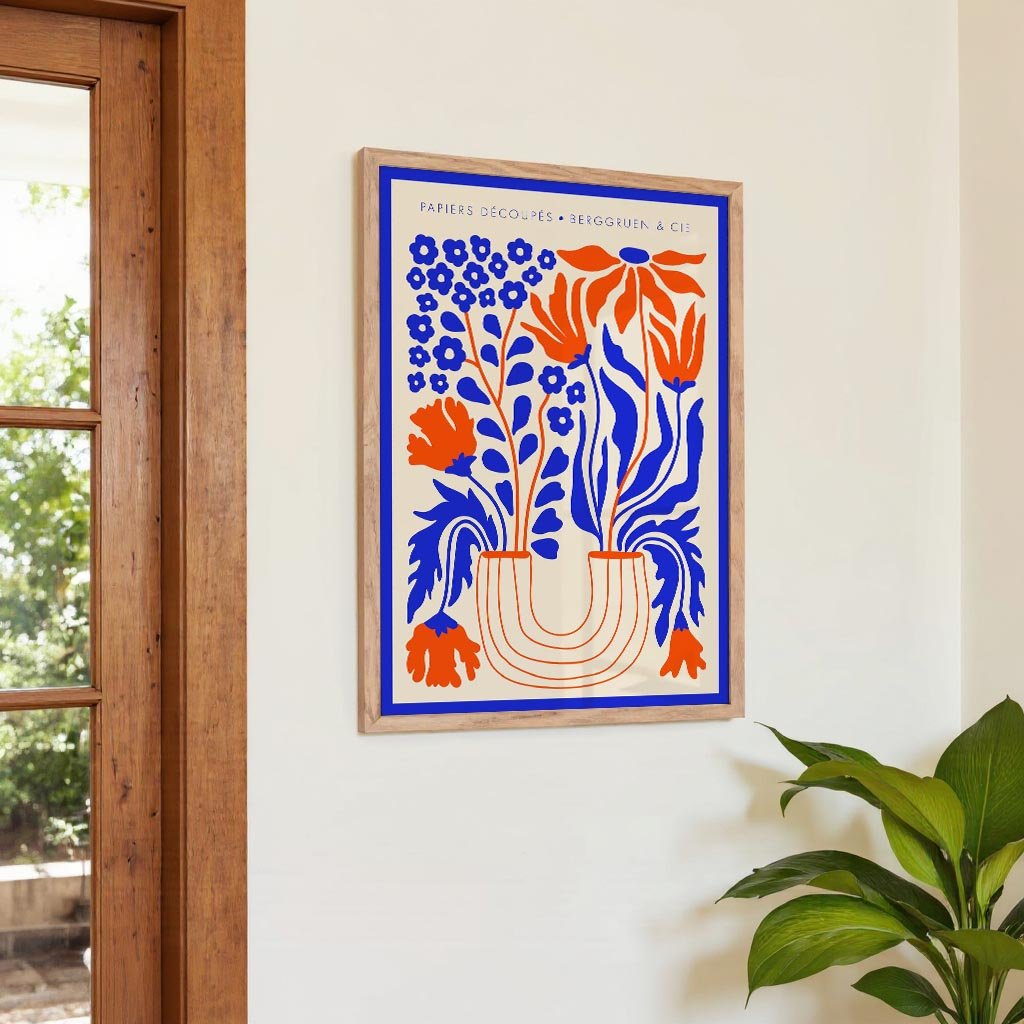 Vaso di fiori blu arancione Papiers Découpés Poster per mostre d'arte
