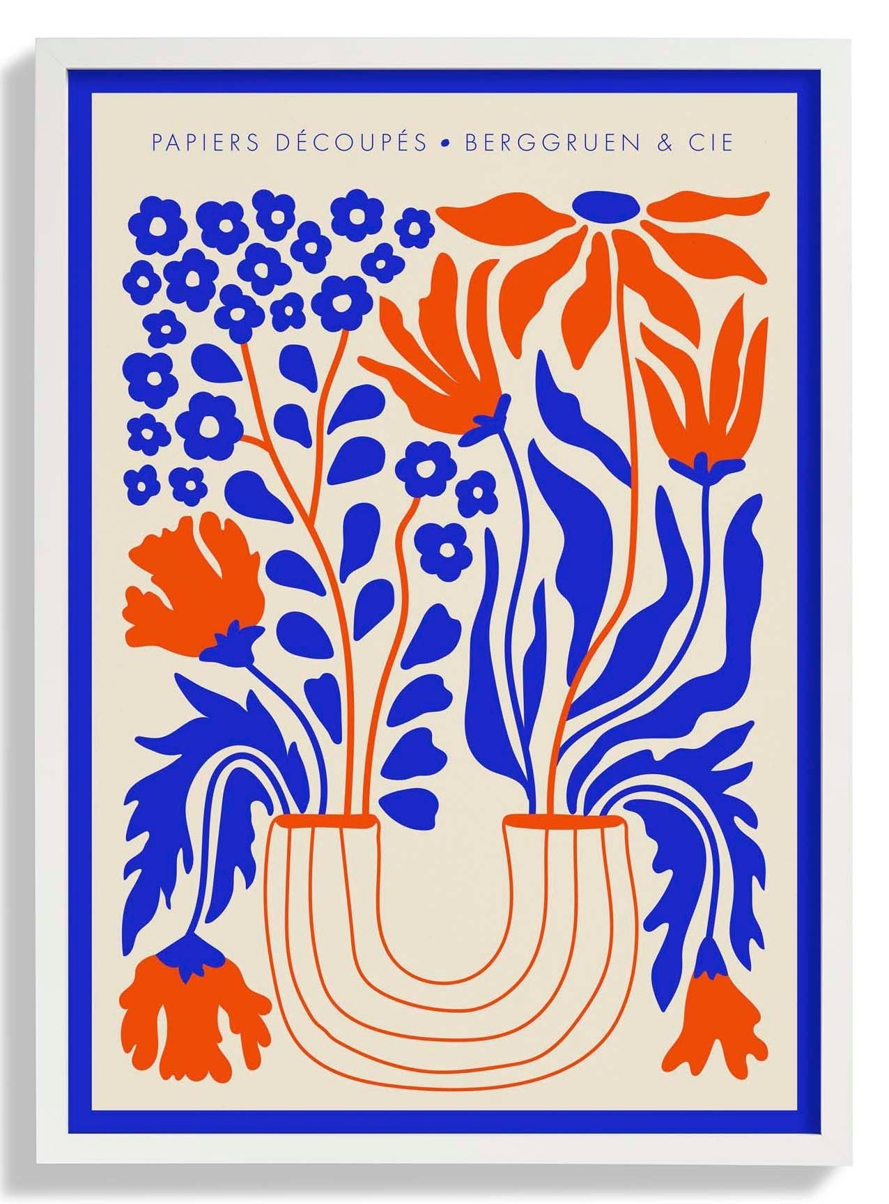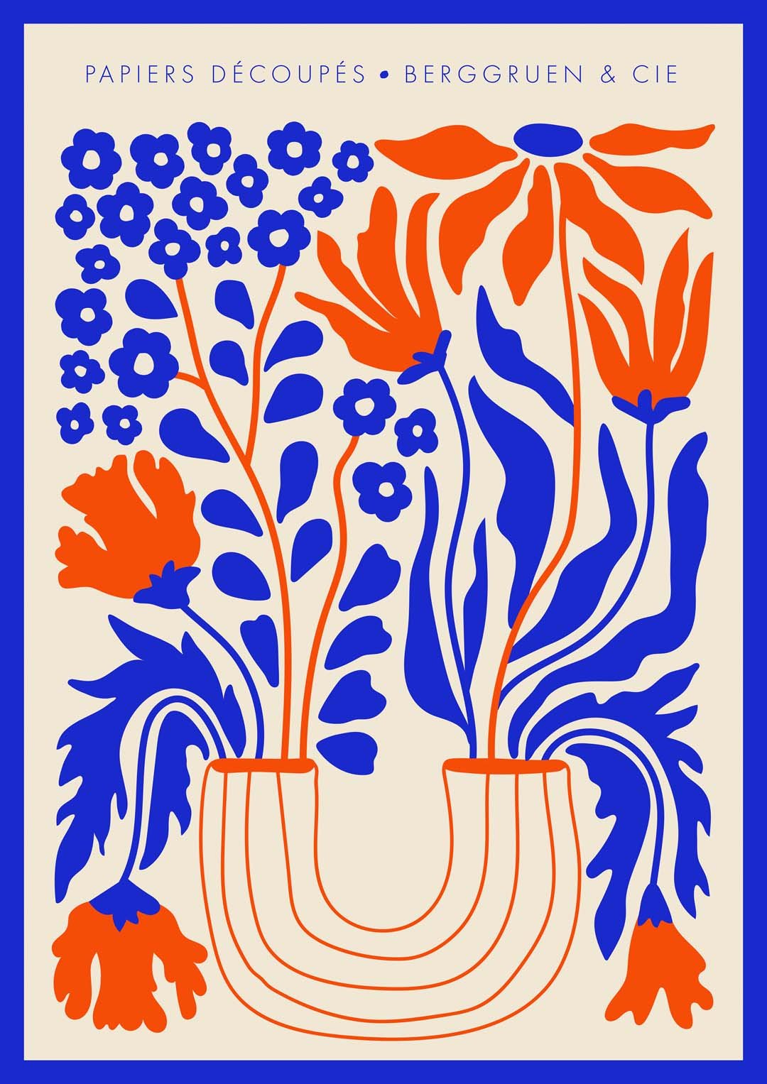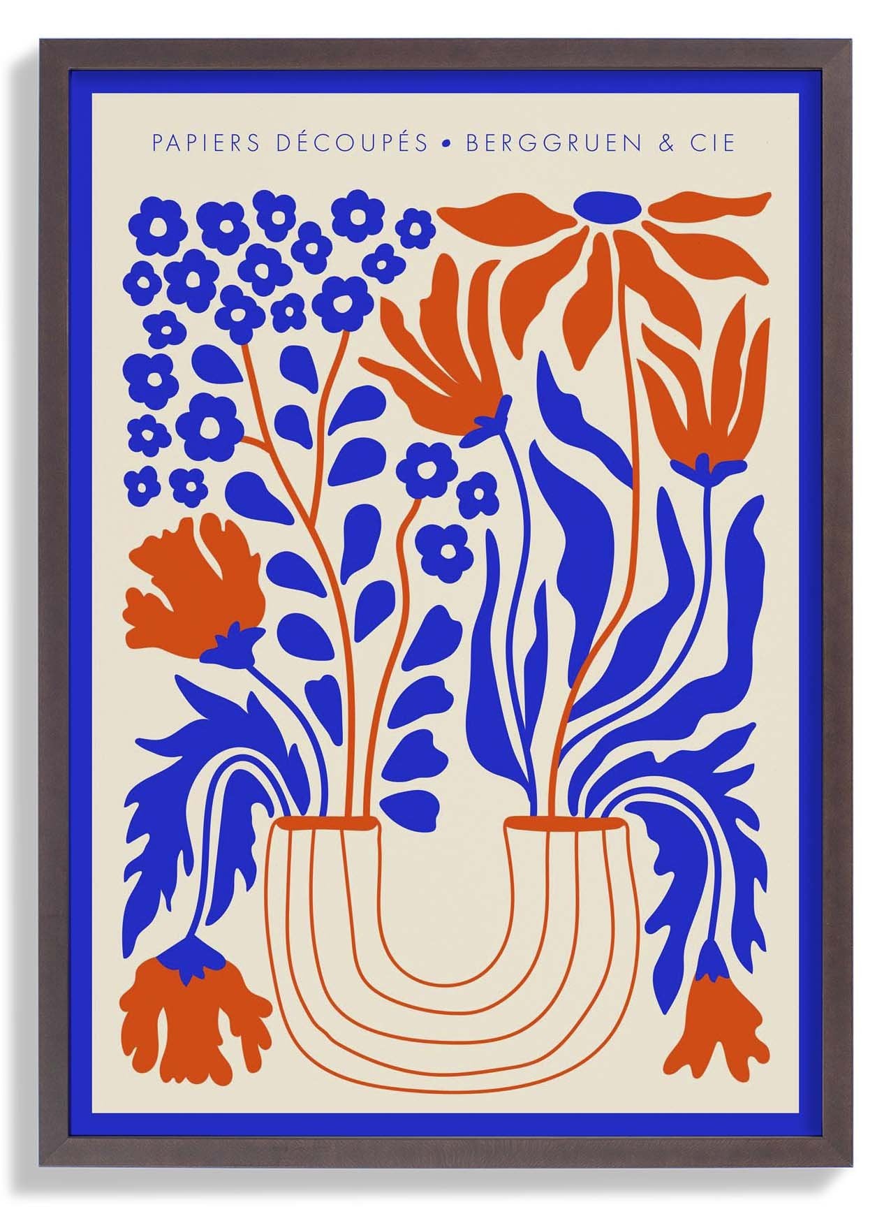 Vaso di fiori blu arancione Papiers Découpés Poster per mostre d'arte