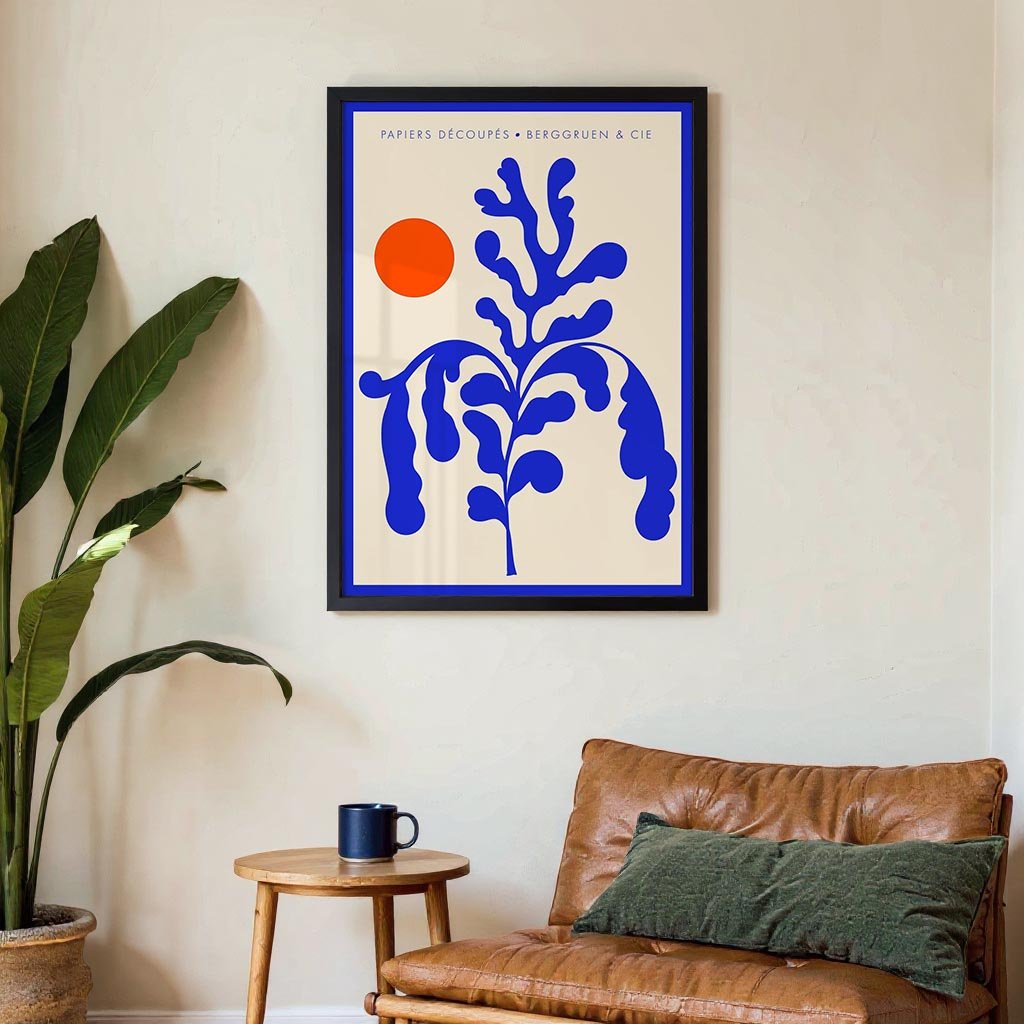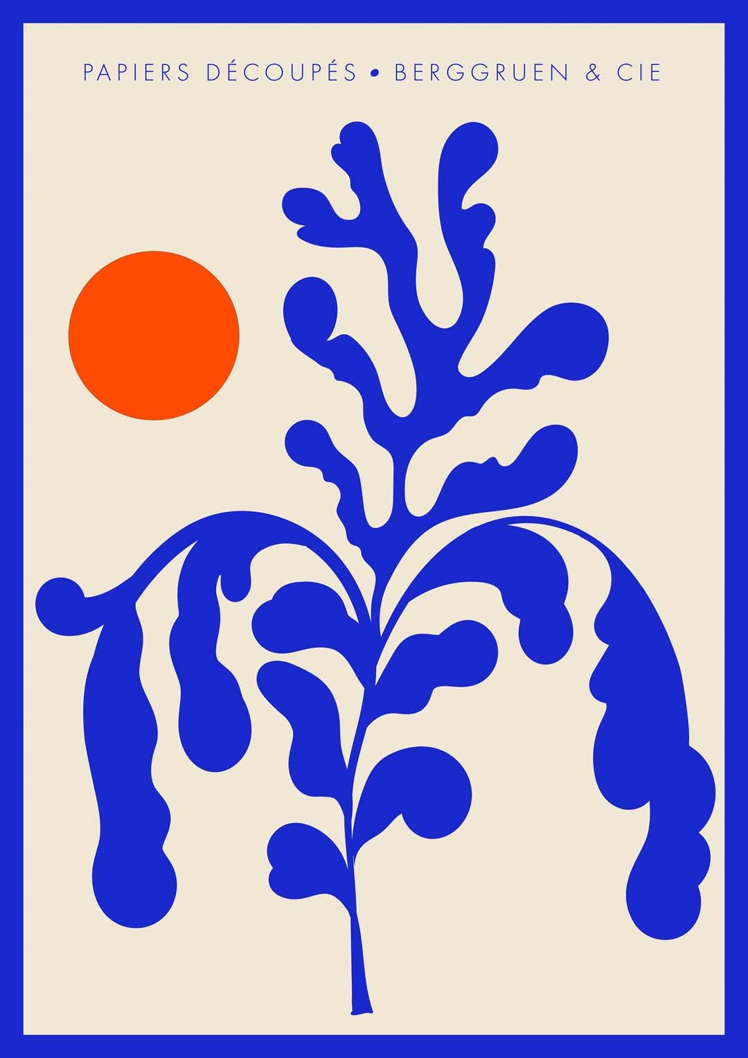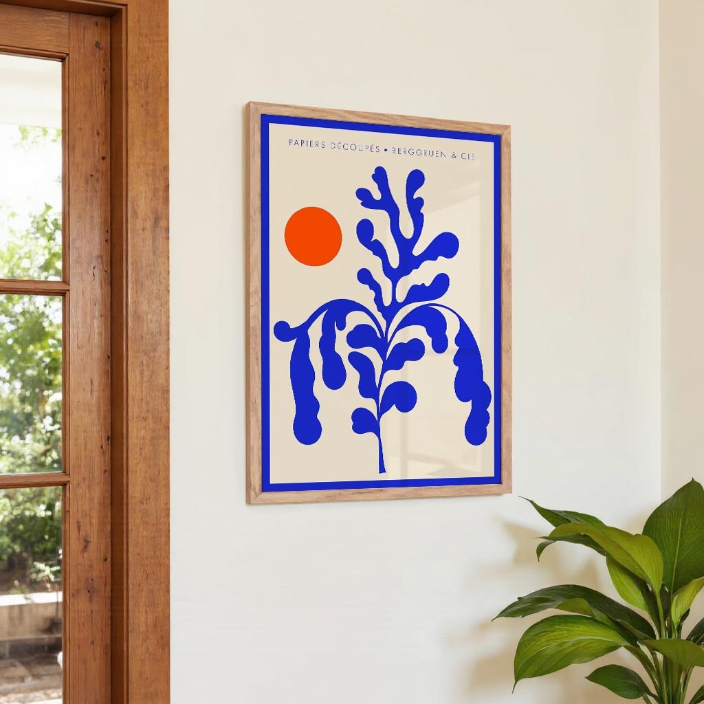 Sunshine Orange Blue Plant Papiers Découpés Poster per mostre d'arte