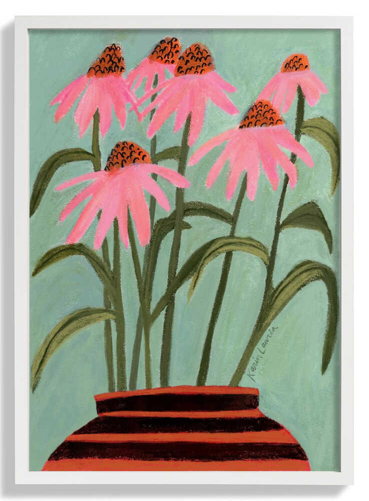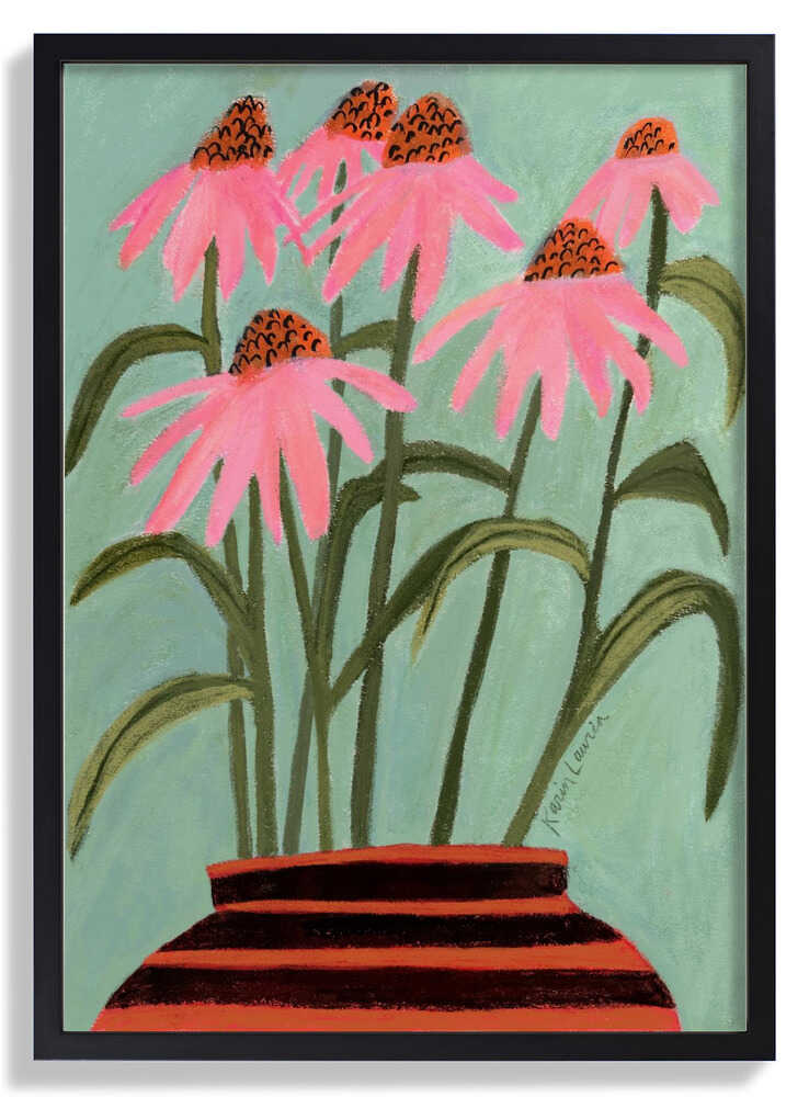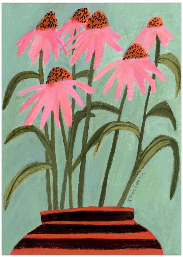 Karin Lauria is a Massachusetts-based artist whose whimsical, vibrant style embraces a sense of childlike wonder. Working with loose, organic forms and joyful colour, she creates spontaneous, uplifting pieces inspired by the idea of painting with the freedom and honesty of a child. Her work celebrates playfulness, imagination, and uninhibited expression.