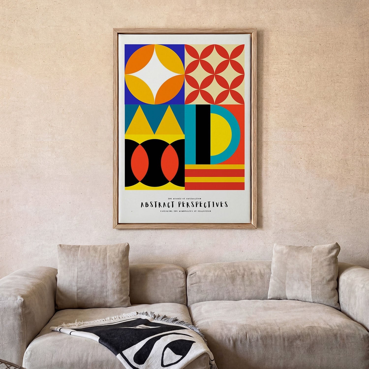 Il contrasto batte l’abbinamento — Non devi per forza far combaciare esattamente il colore della parete. Una stampa dai toni profondi su una parete chiara, oppure un pezzo deciso in una stanza neutra, spesso sta molto meglio di un abbinamento perfetto.