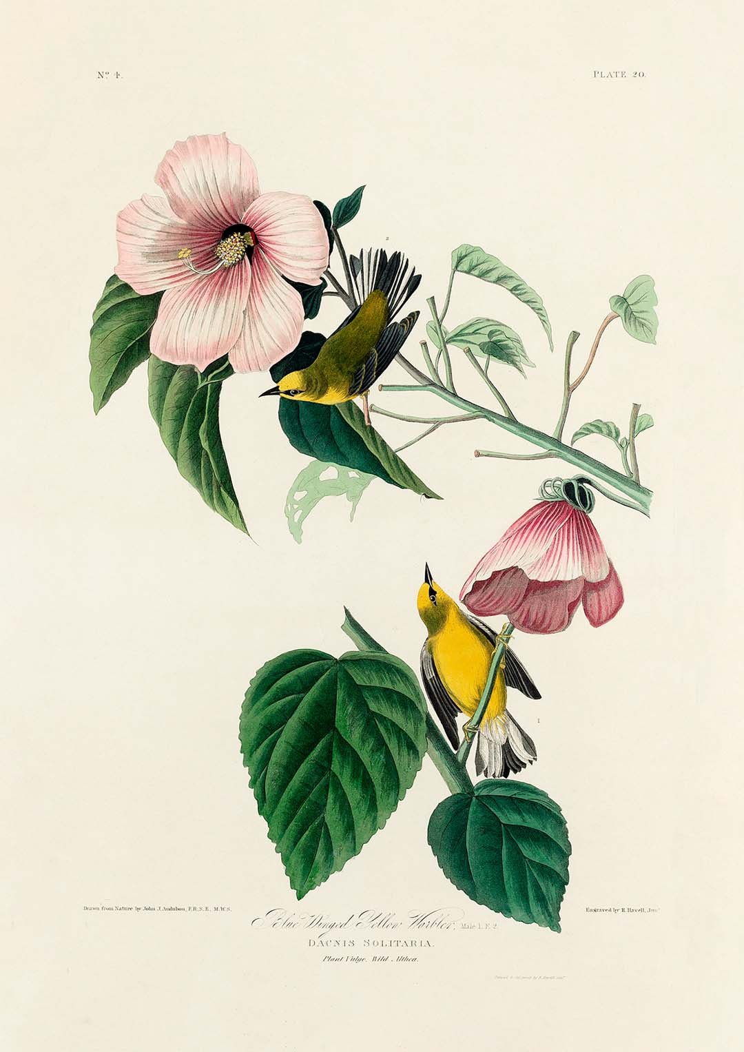 Usignolo giallo alato blu dal poster Birds of America