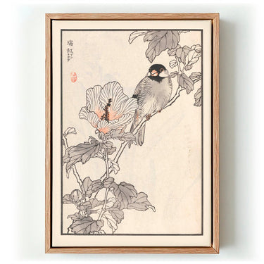 La Tavola 13 ritrae un uccello solitario su un ramo invernale — legno nudo, luce fredda, una quiete quasi fotografica nella sua precisione. L'uccello è leggermente incurvato contro il gelo, le piume gonfie, un occhio socchiuso. Bairei rende il ramo gelato con inchiostro grigio-argenteo, scarno e fragile. La composizione è volutamente essenziale: niente fiori, niente foglie — solo l'uccello, il ramo e l'aria bianca. La semplicità è il messaggio, e parla forte.