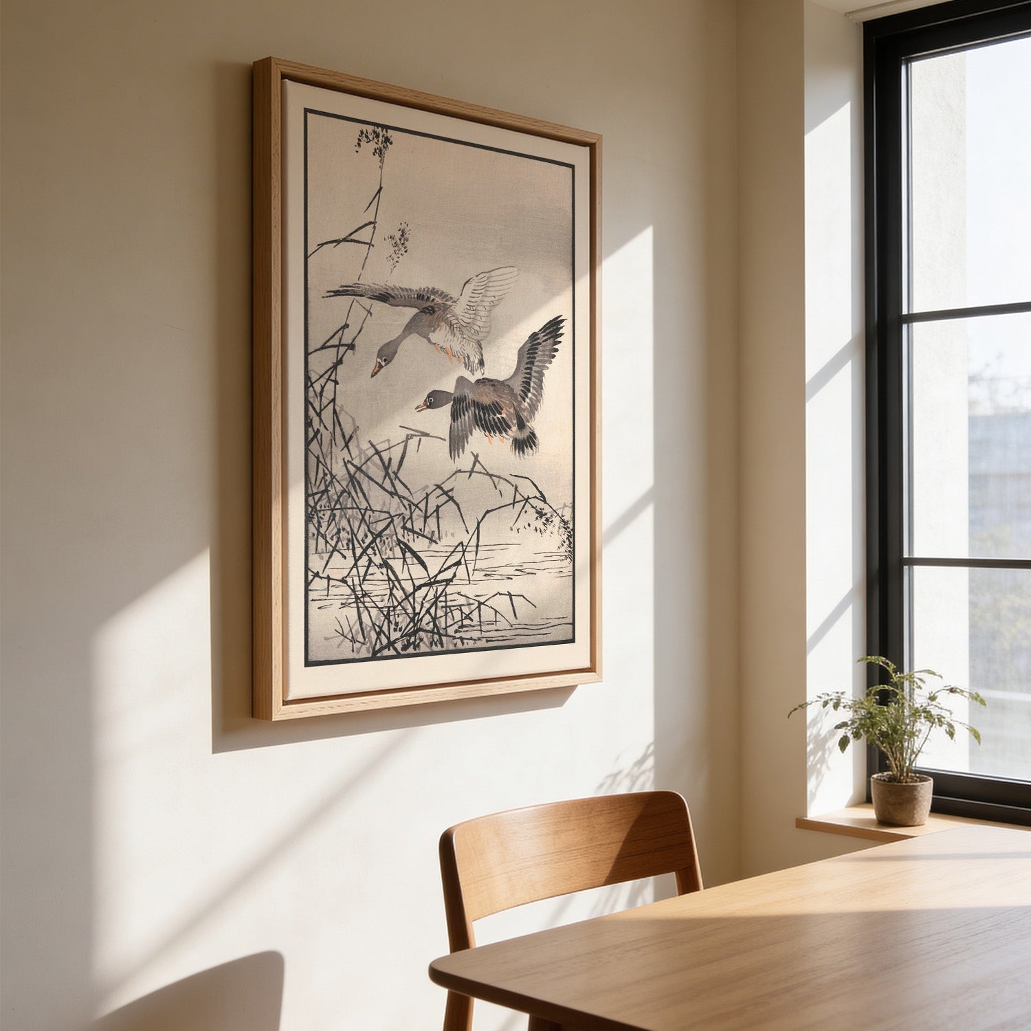 A un’altezza pari agli occhi — Il centro della tua stampa dovrebbe trovarsi a circa 145–150 cm dal pavimento. Molte persone appendono l’arte troppo in alto — e finisce per sembrare sospesa sulla parete.
