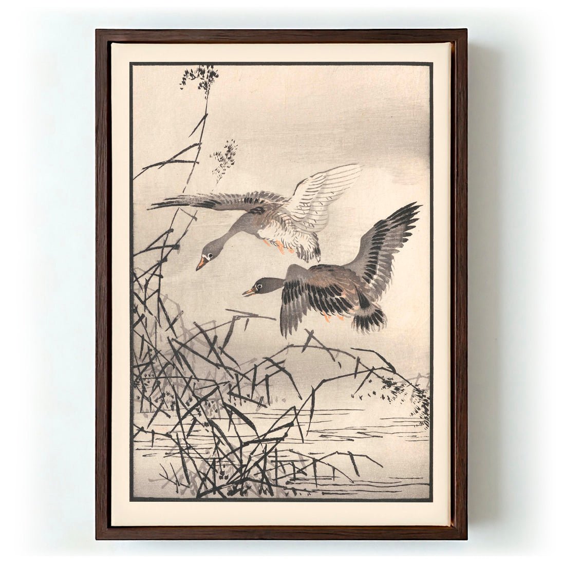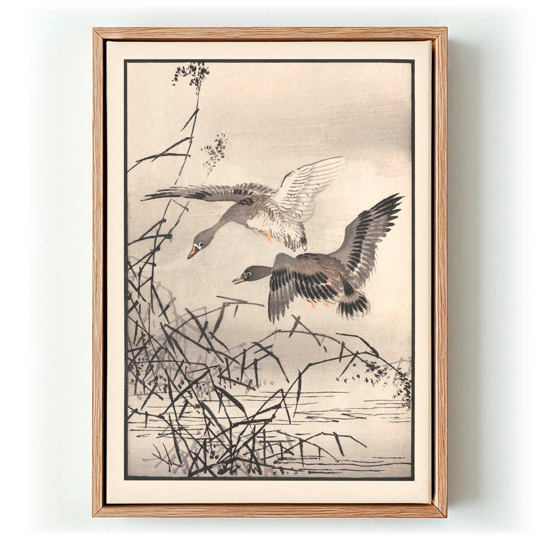 Nella Tavola 27, due uccelli condividono un fitto ramo in fiore in una composizione quasi simmetrica insolita — uno rivolto a sinistra, l'altro a destra, come colti nel mezzo di una conversazione. Bairei raramente si ripete a livello compositivo, e questa tensione speculare dona all'immagine un'energia giocosa assente nei suoi studi più solitari. I fiori affollano i due terzi superiori della tavola, dipinti con pennellate sicure e sovrapposte che evocano una tarda primavera rigogliosa, lontana da qualsiasi ordine decorativo.