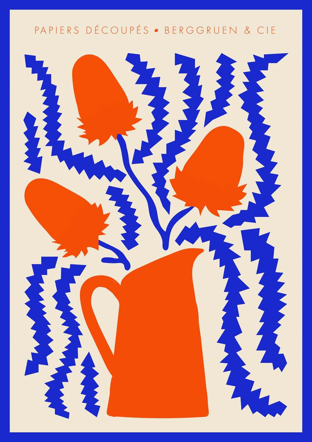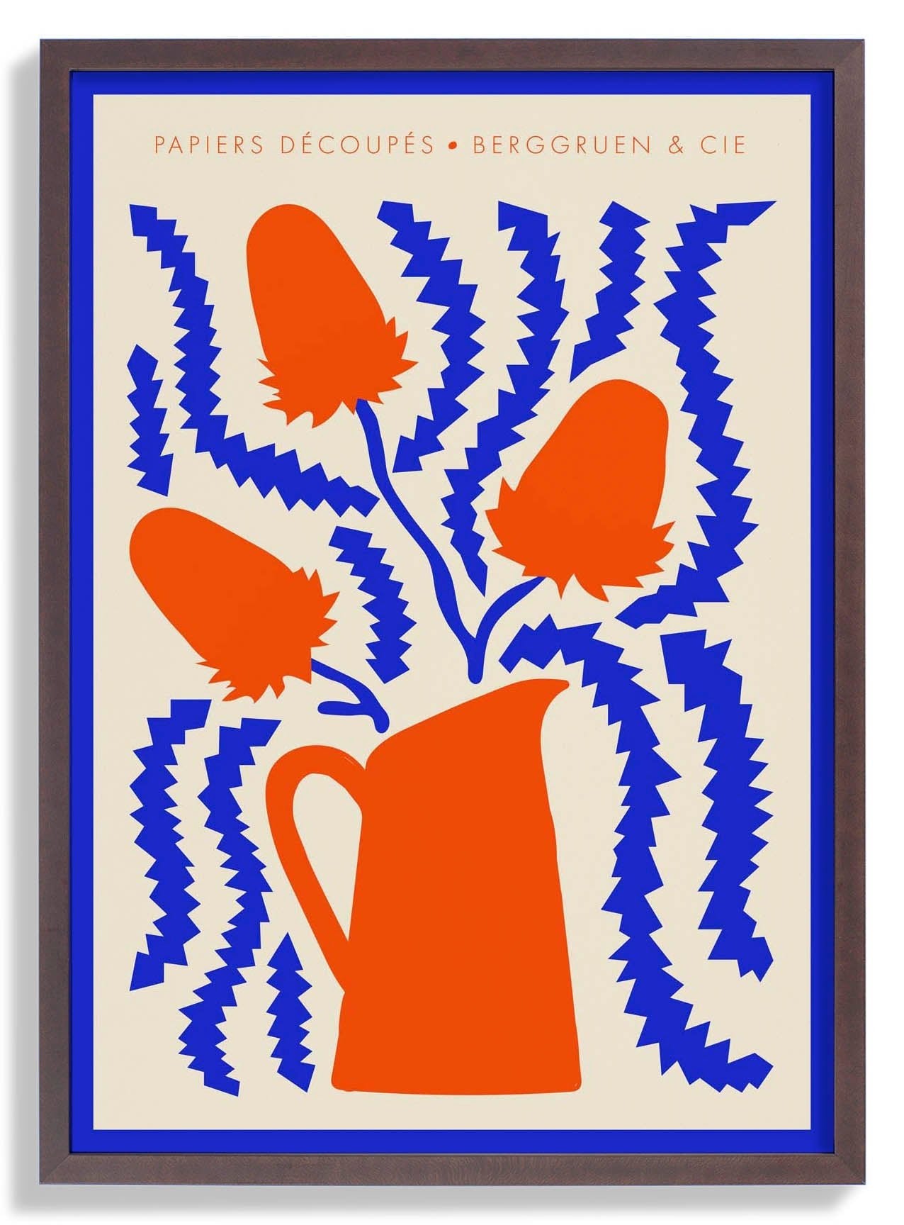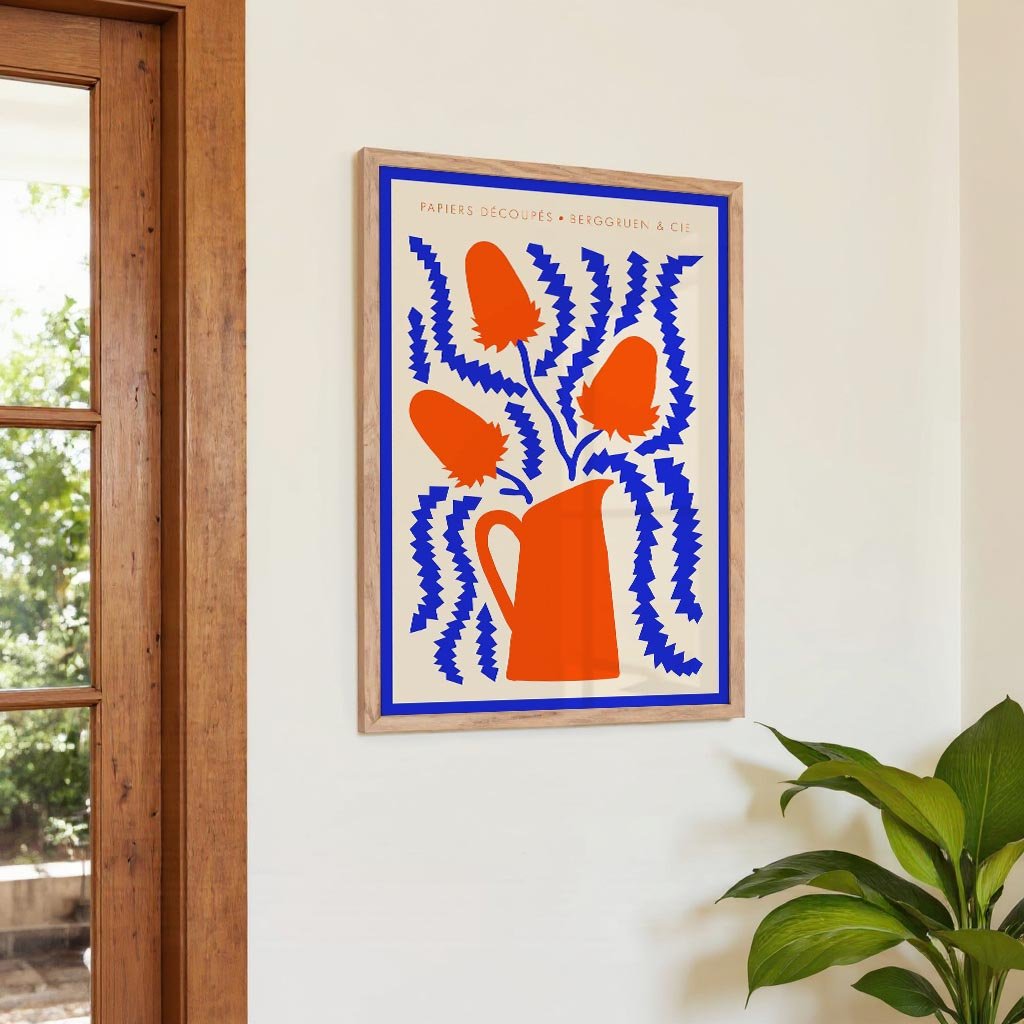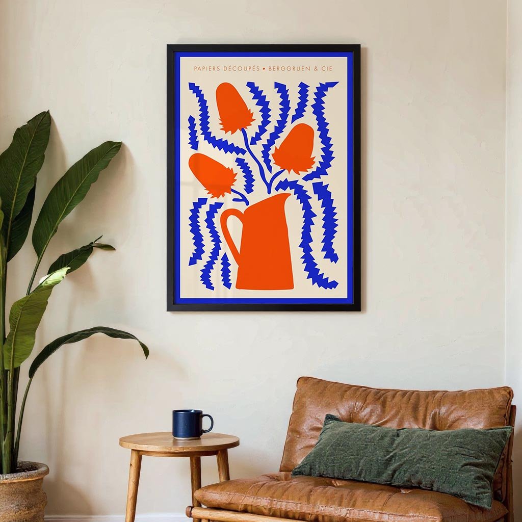 Brocca Fiori blu e arancione Papiers Découpés Poster per mostra d'arte