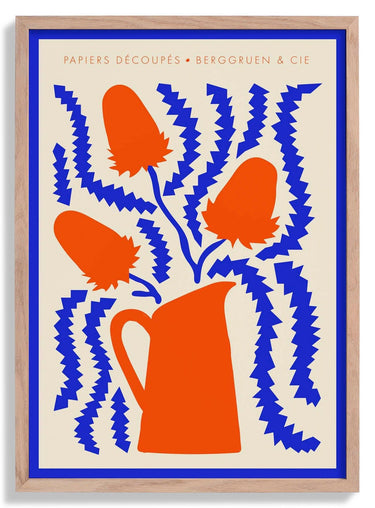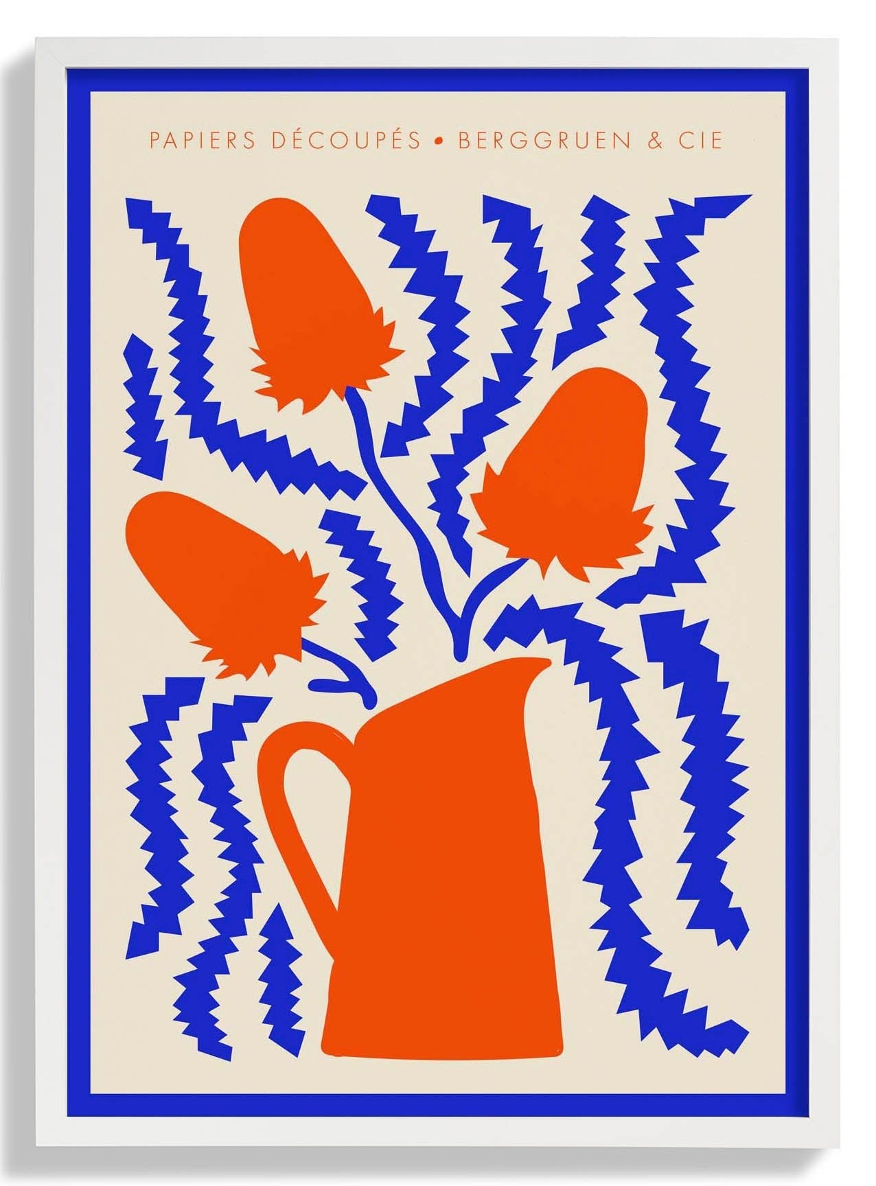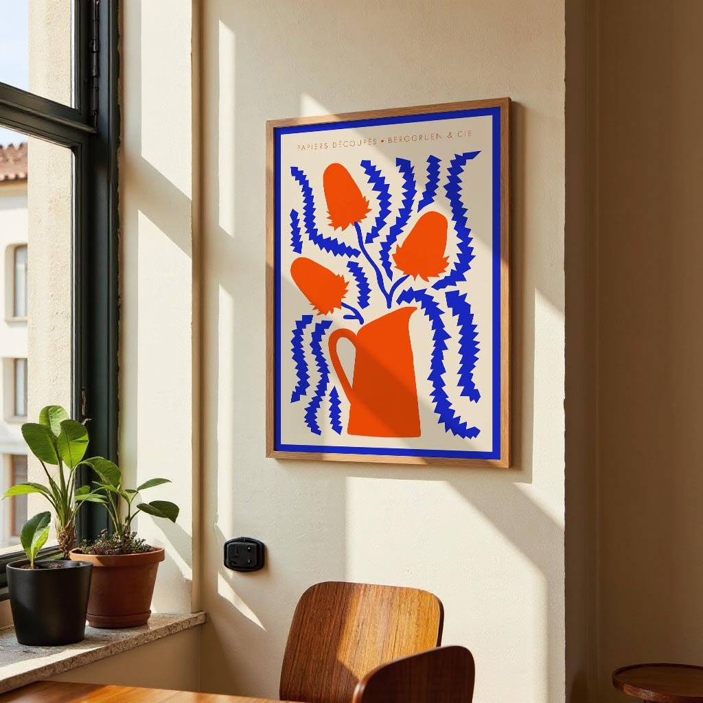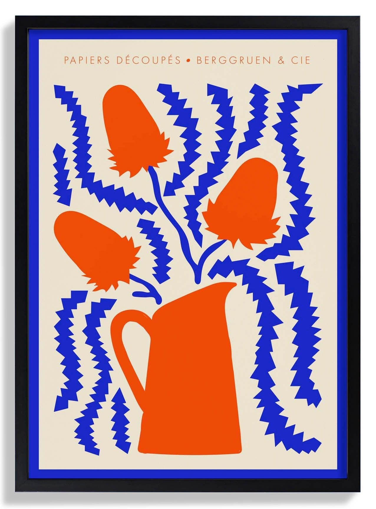 Brocca Fiori blu e arancione Papiers Découpés Poster per mostra d'arte