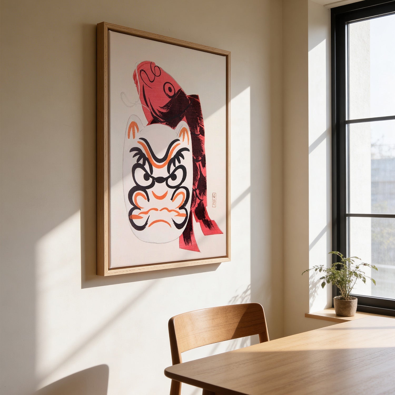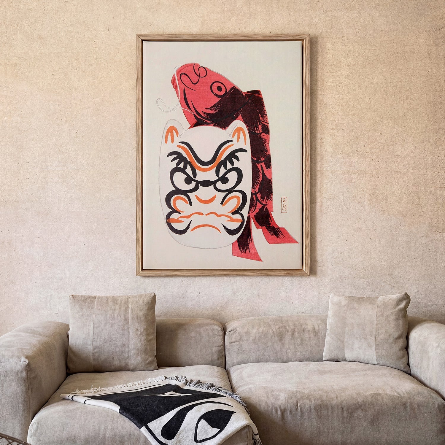 Il contrasto batte l’abbinamento — Non devi per forza far combaciare esattamente il colore della parete. Una stampa dai toni profondi su una parete chiara, oppure un pezzo deciso in una stanza neutra, spesso sta molto meglio di un abbinamento perfetto.