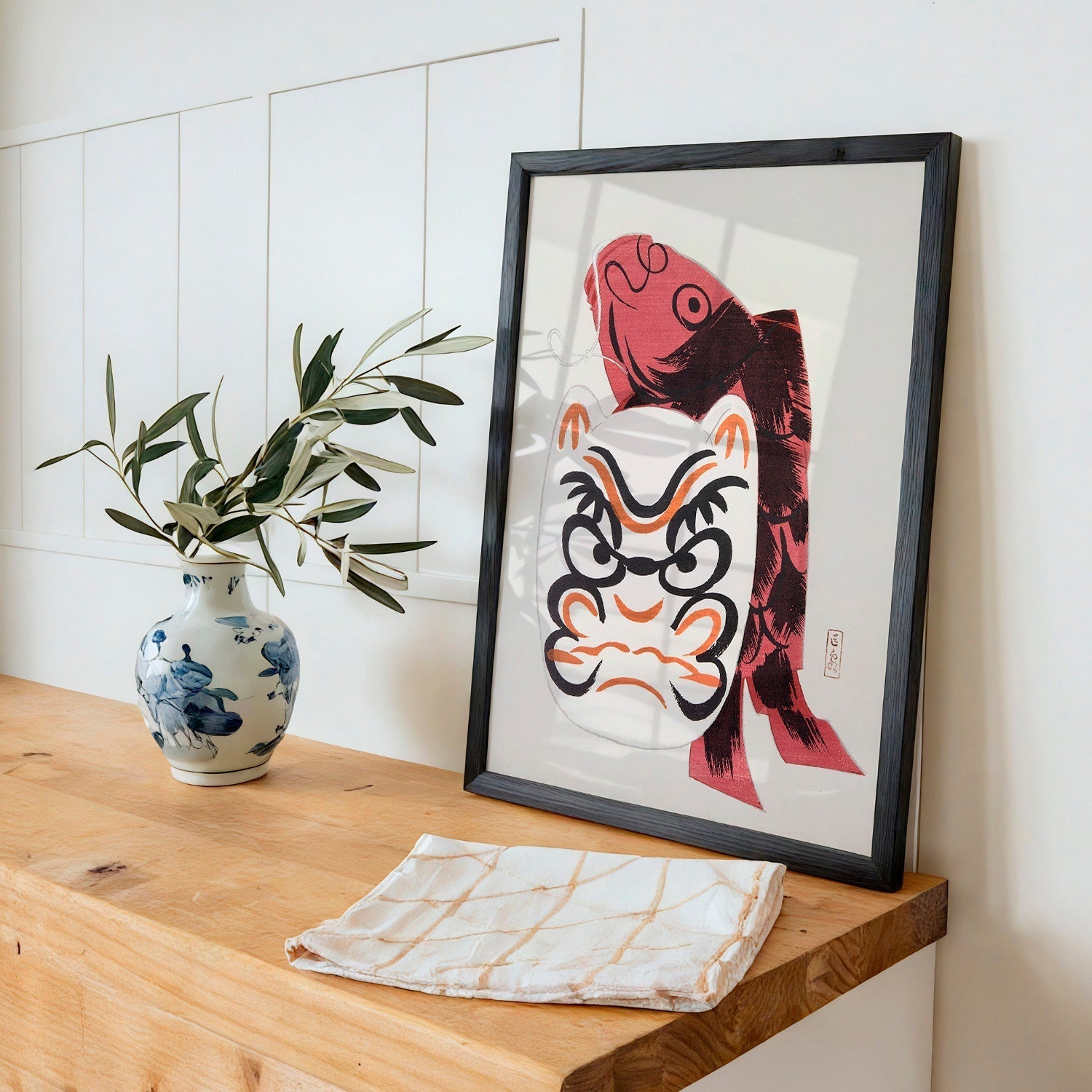 Elke Kawasaki Kyosen-prent wordt geproduceerd in onze Berlijnse studio op 225g mat fine art papier met archivale pigmentinkten. Het matte oppervlak en de nauwkeurige kleurweergave zijn essentieel voor deze werken — de gedetailleerde uitwerking van elk speeltje, met zijn specifieke regionale kleuren en decoratieve patronen, vereist een precisie die alleen een hoogwaardig fine art papier kan leveren.