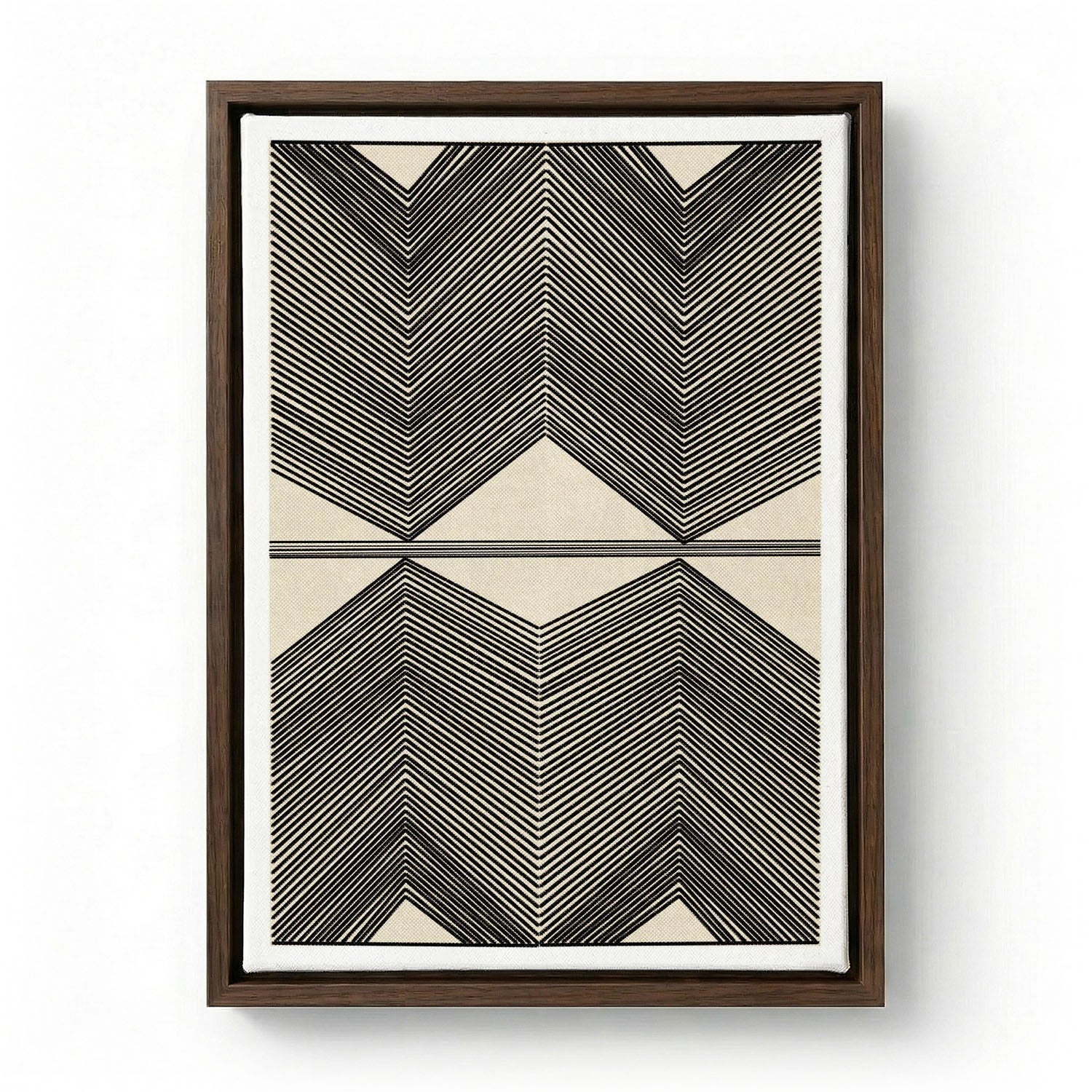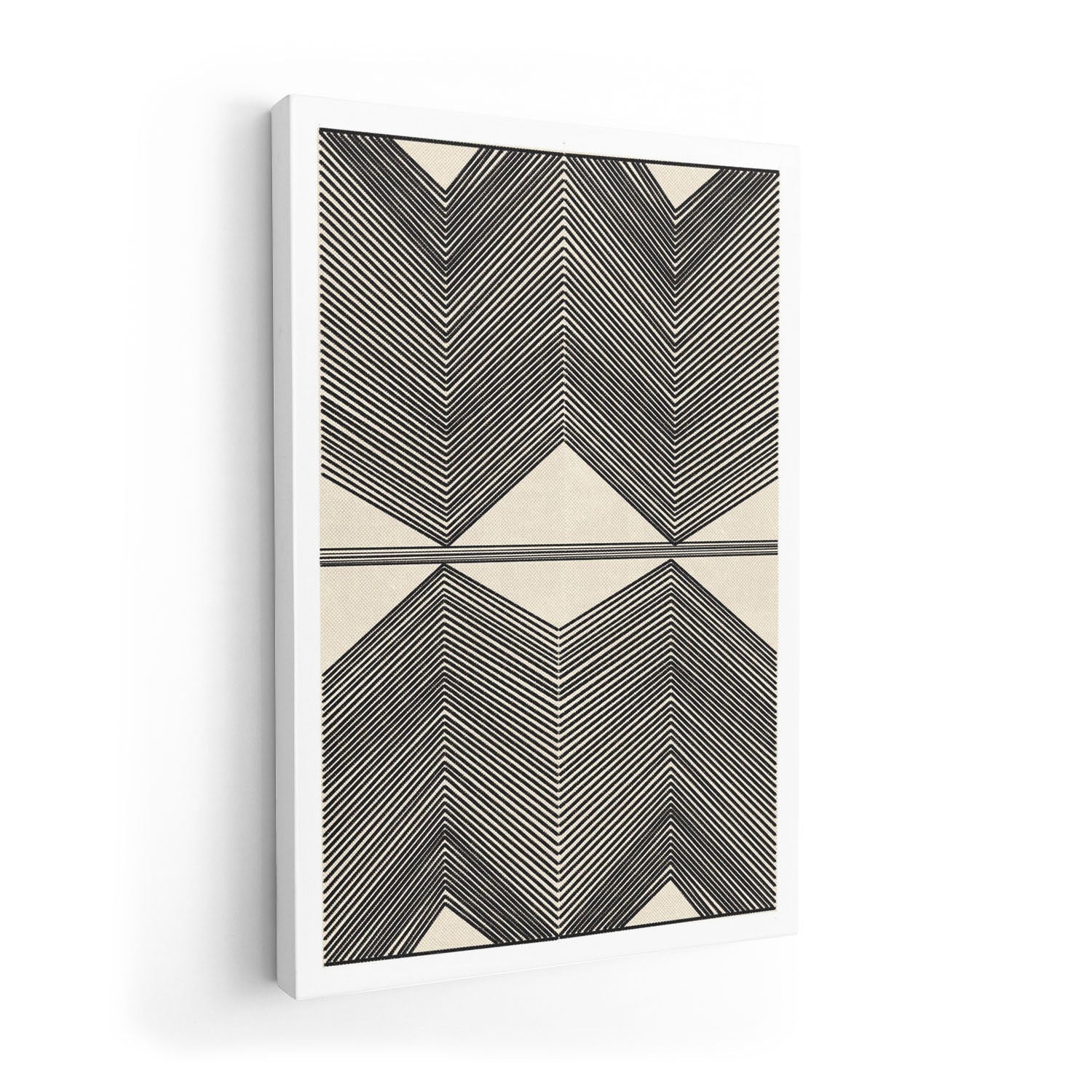 Het canvasoppervlak geeft dit werk een warme, gestructureerde kwaliteit die de grafische precisie verzacht tot iets meer schilderachtigs — een canvasprint waarbij geraffineerde lijnen en tonale contrasten diepte en aanwezigheid krijgen aan de muur.