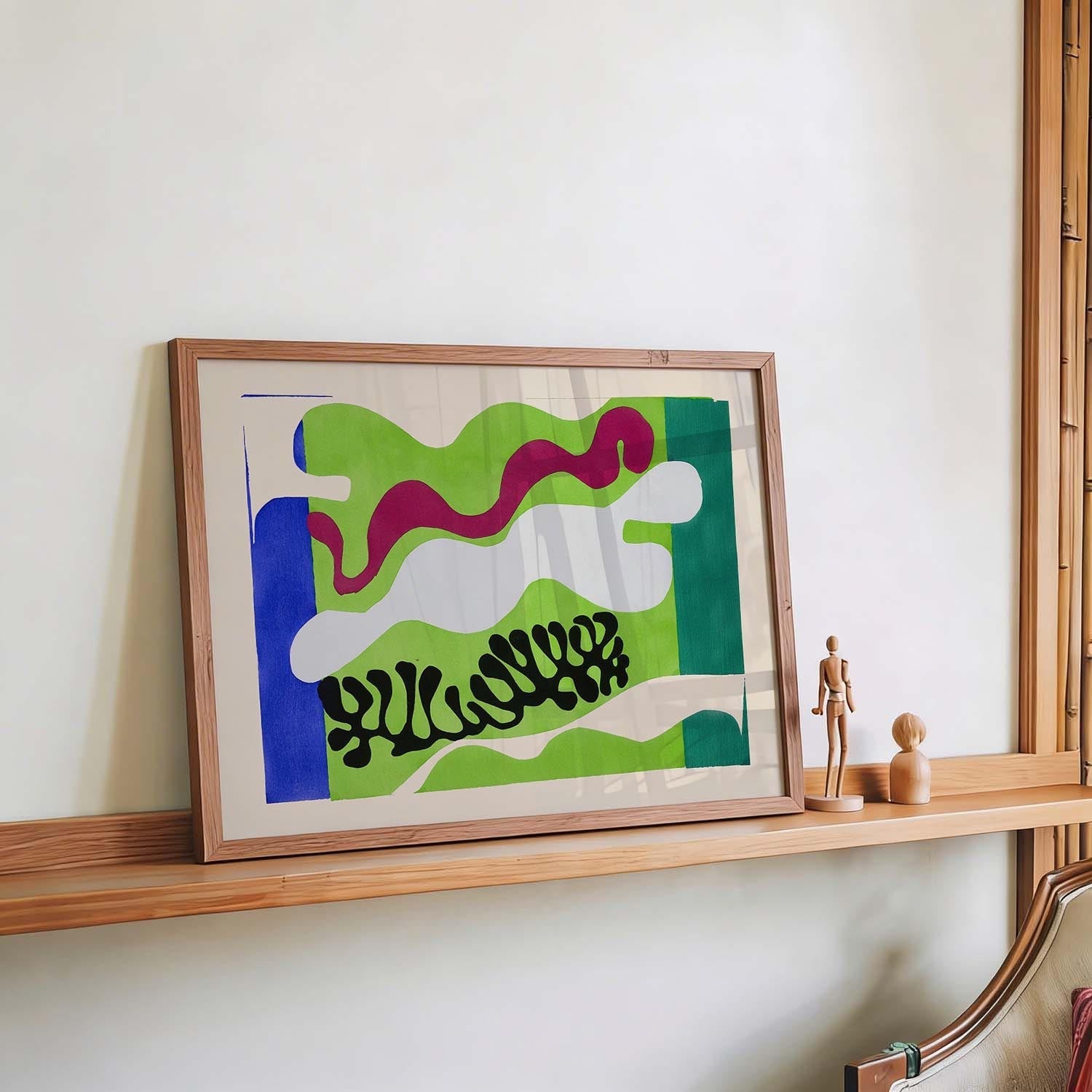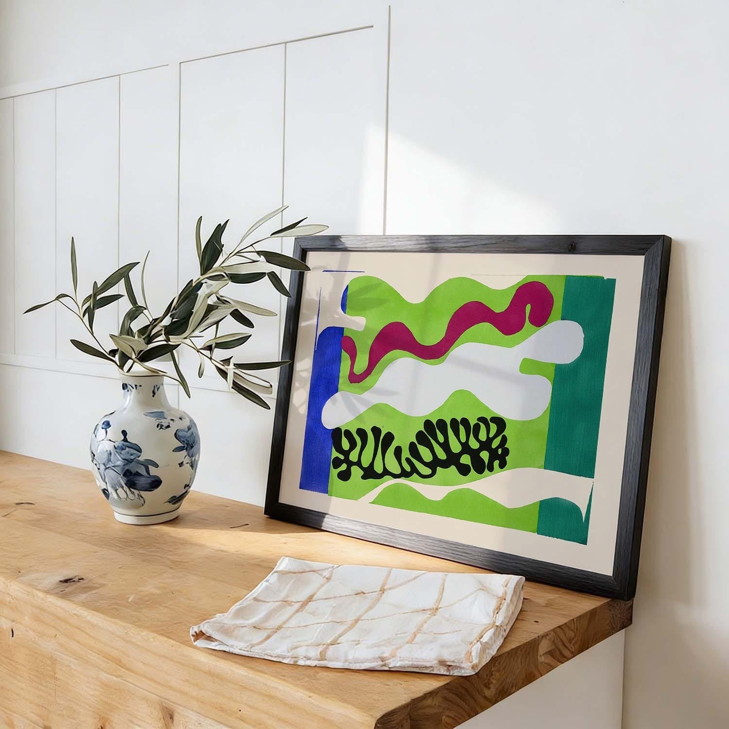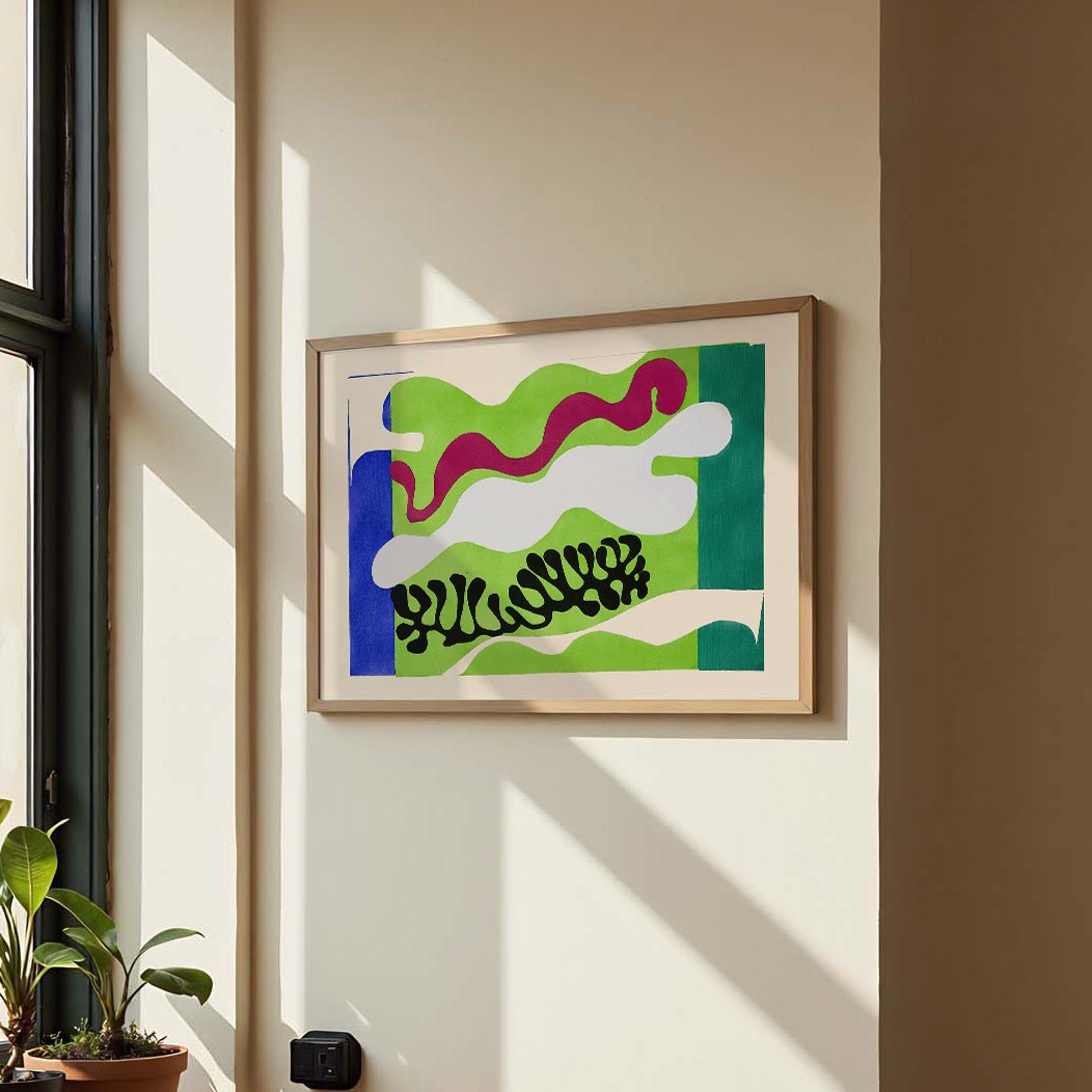 Contrast beats matching — You don’t need to match your wall colour exactly. A deep-toned print on a light wall, or a bold piece in a neutral room, often looks far more interesting than a perfect colour match.