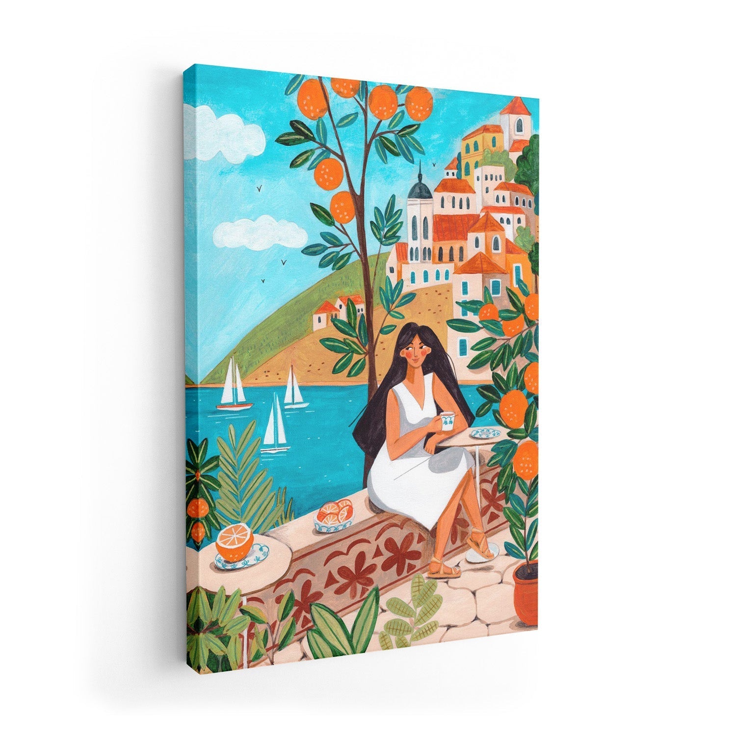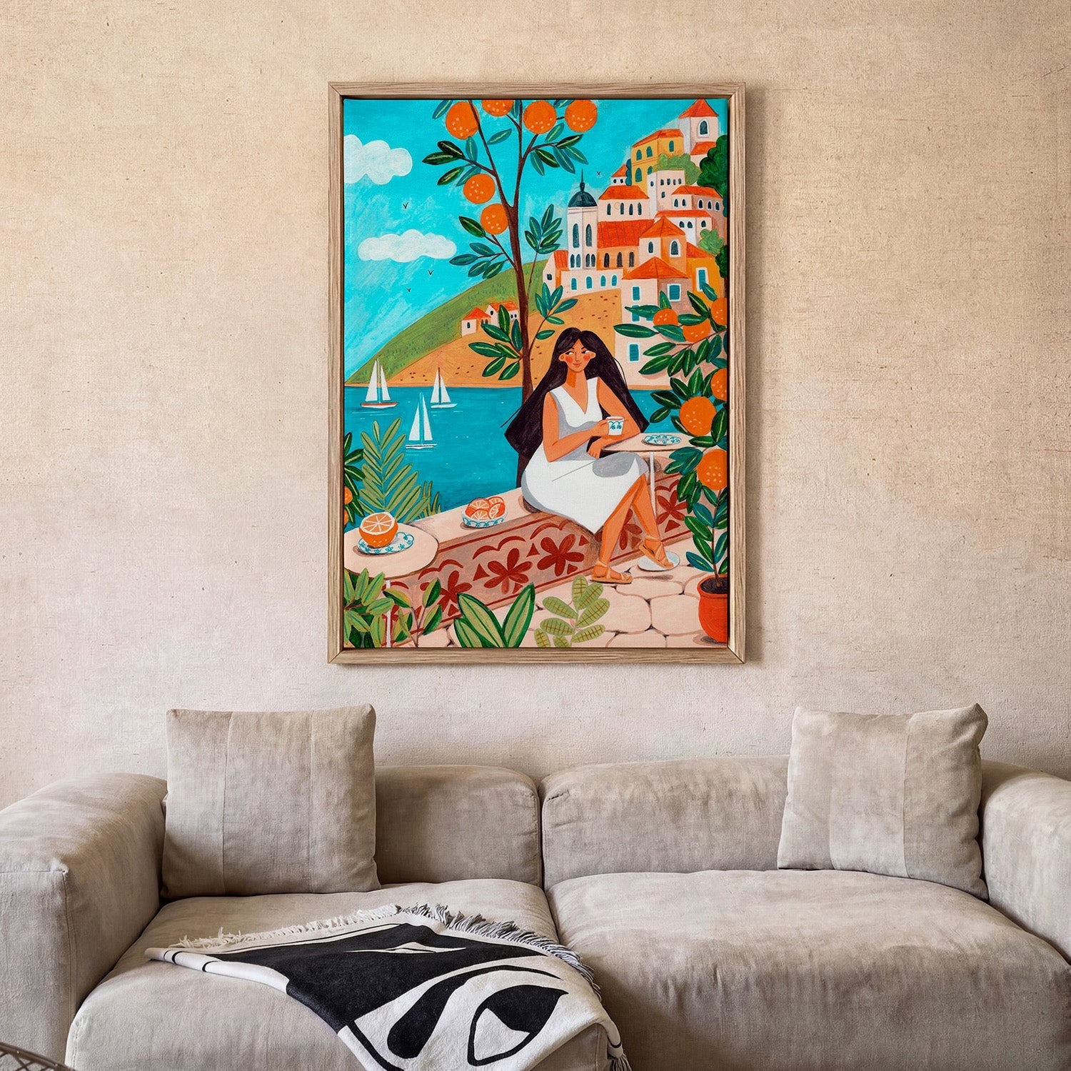 Produced on archival cotton canvas in our Berlin studio, this canvas print brings out the warmth and saturation of Bonne Müller's illustration. The woven texture adds a painterly depth, giving the coastal scene a presence that paper alone cannot match.