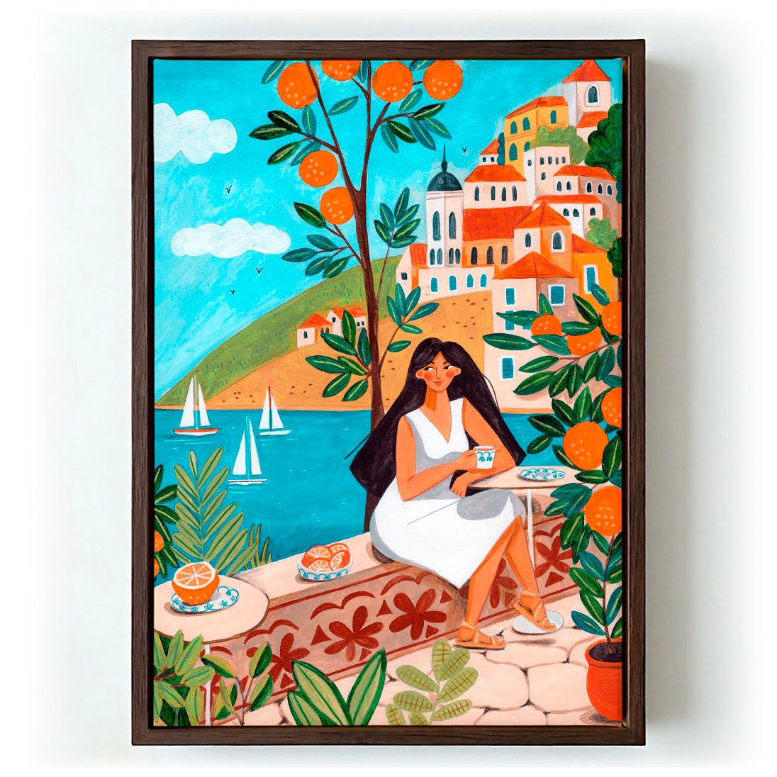 Travel poster woman in Mediterranean coast by Caroline Bonne Müller