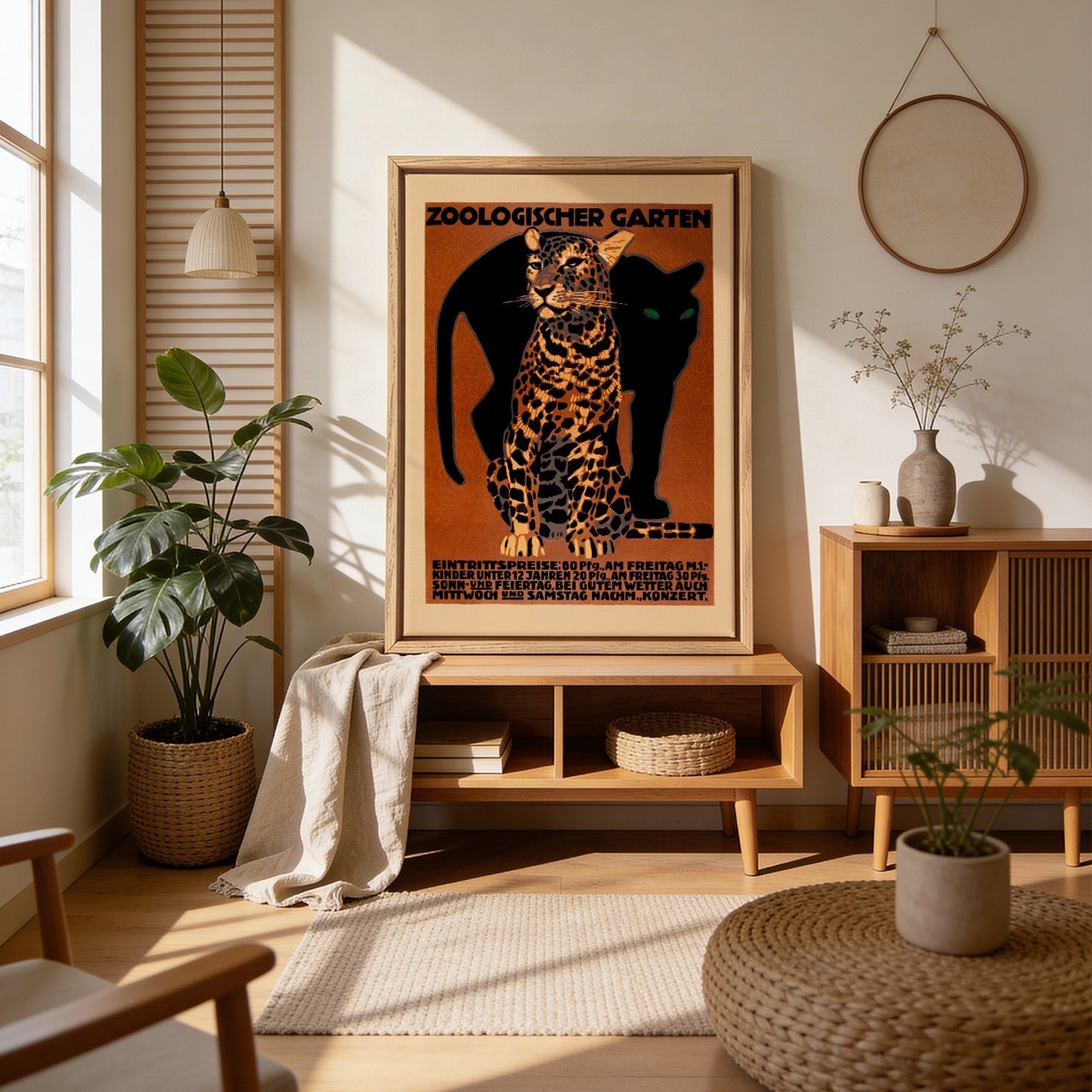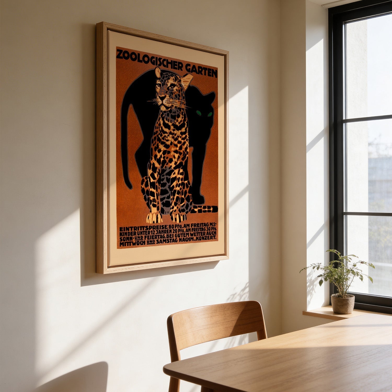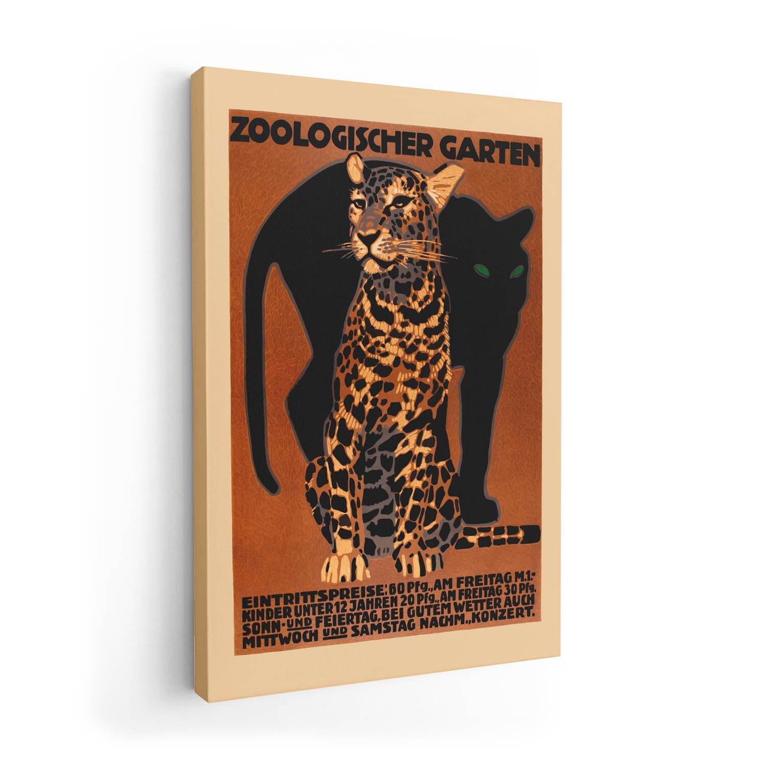 This vintage Zoologischer Garten poster captures the golden era of graphic zoo advertising — bold lettering, vivid animal illustration, and a confident poster-art composition designed to stop a crowd. The image balances decorative appeal with clear visual hierarchy: the animal subject commands the frame while the typography grounds the design in its cultural moment. Colours are warm and direct, printed flat in the lithographic tradition, giving the whole piece a graphic punch that remains immediately appealing across decades. It reads as both cultural document and striking decorative object.